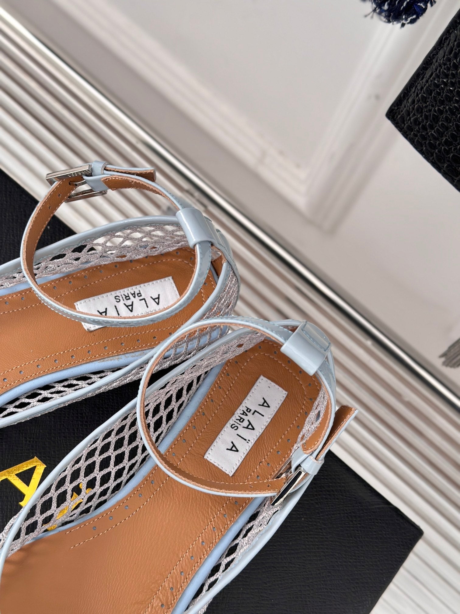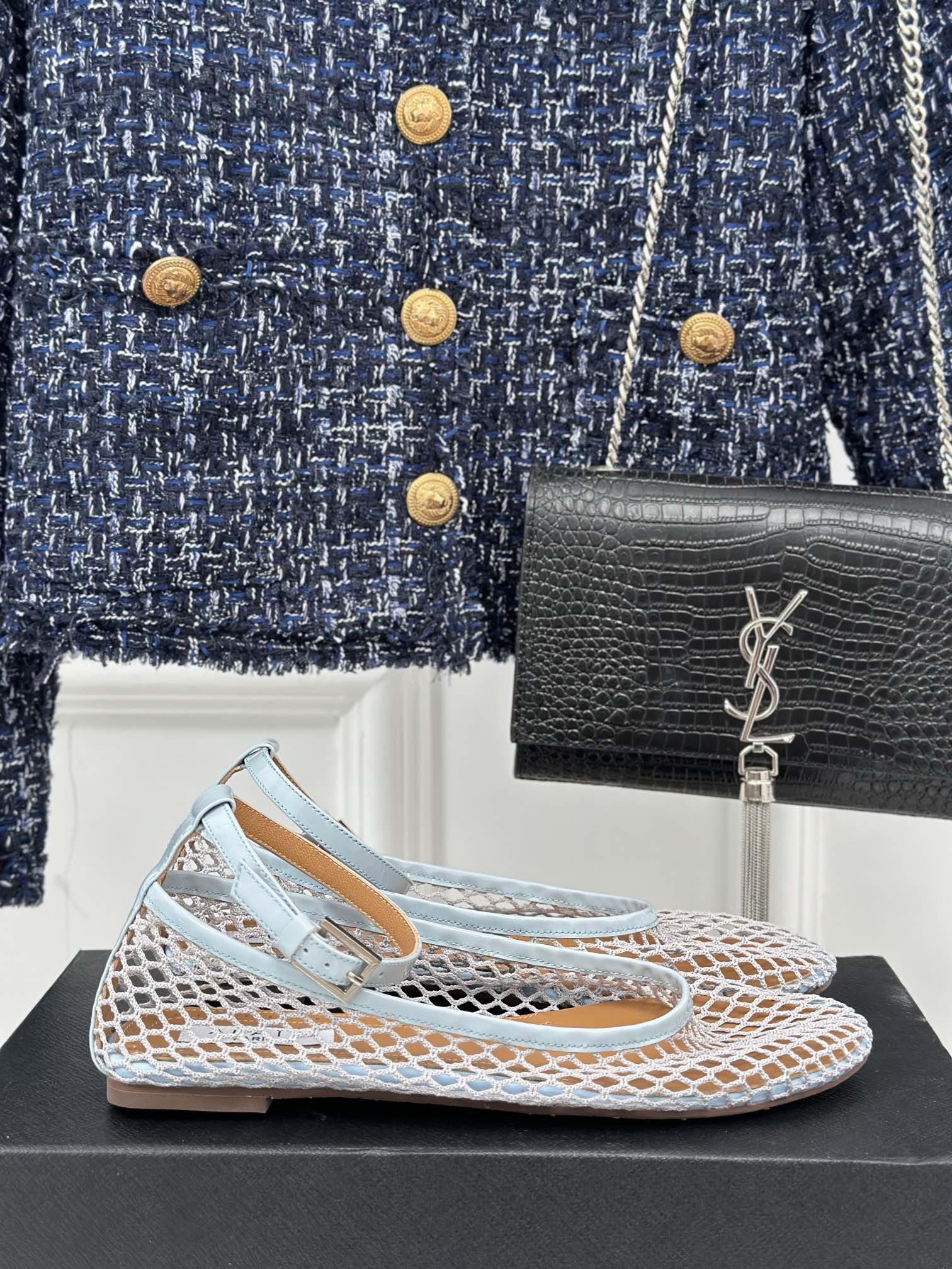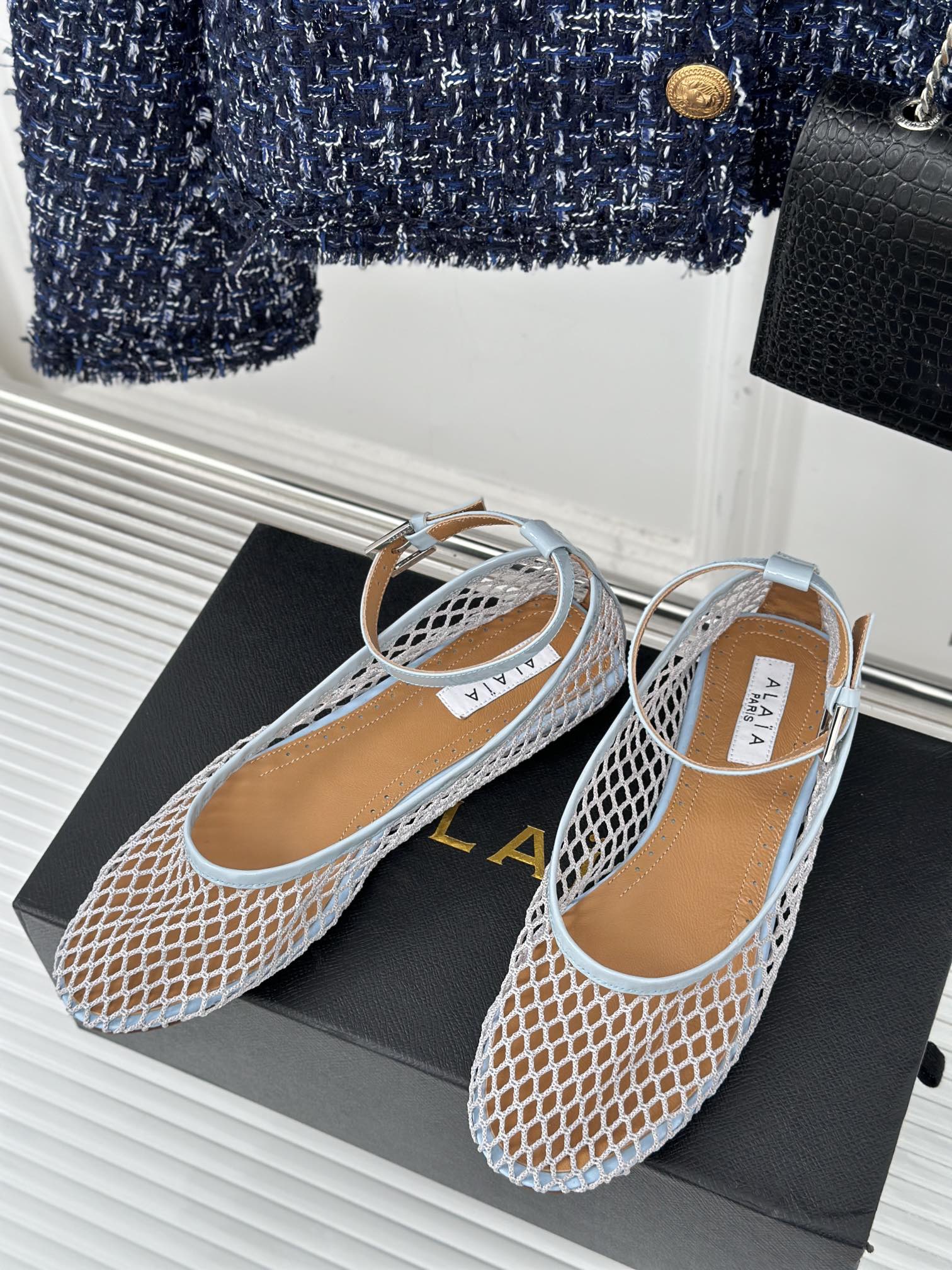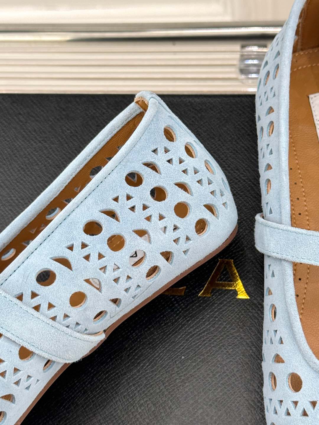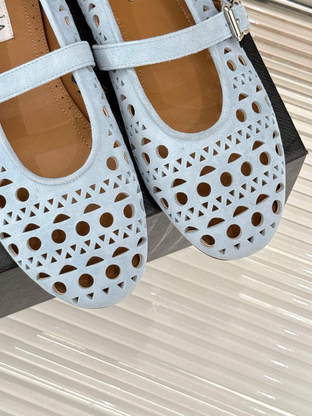 Alaia 2025 Criss Cross With Stud Ballet Flats Light Blue Suede 293212