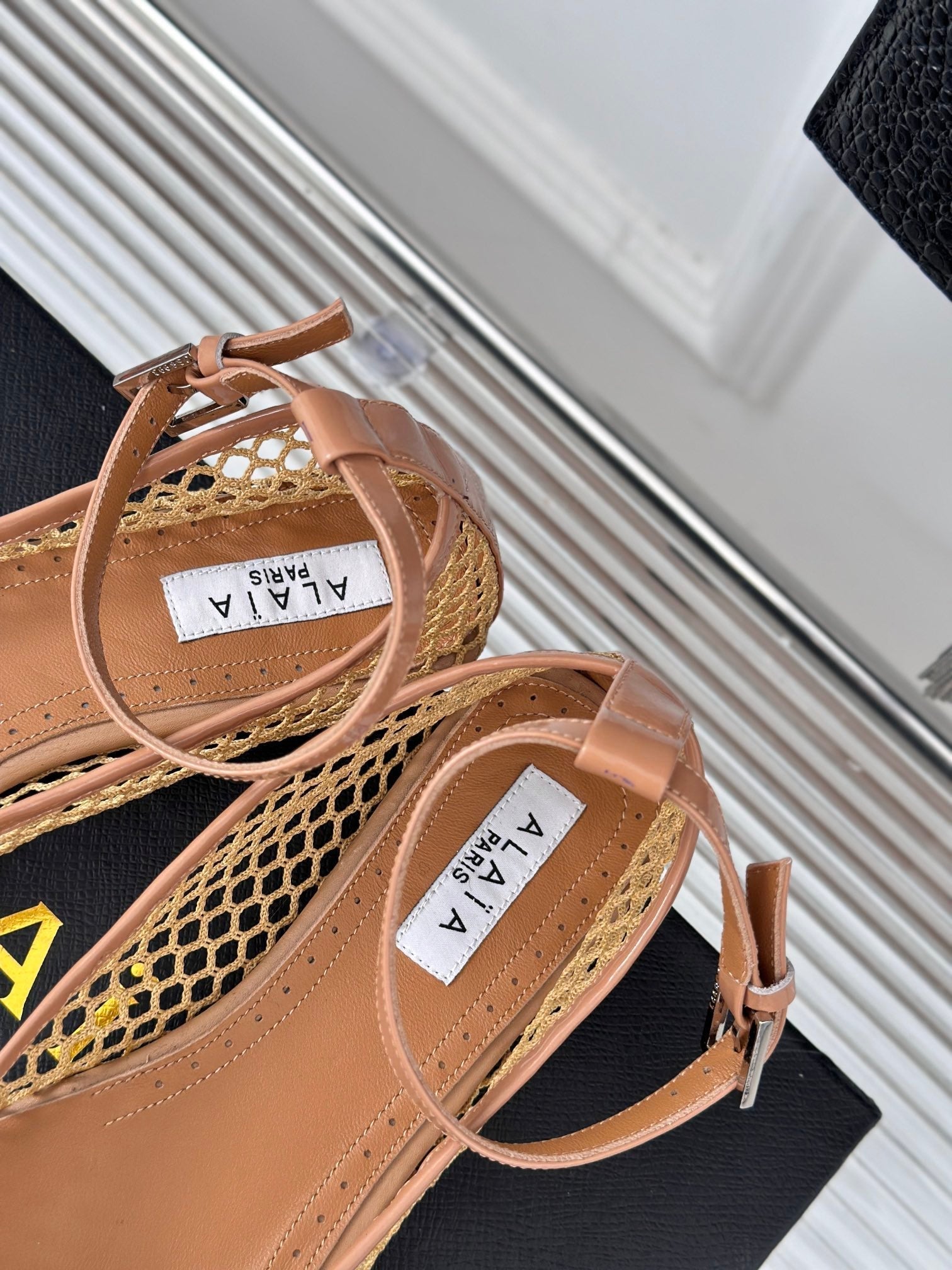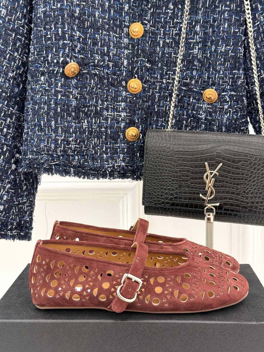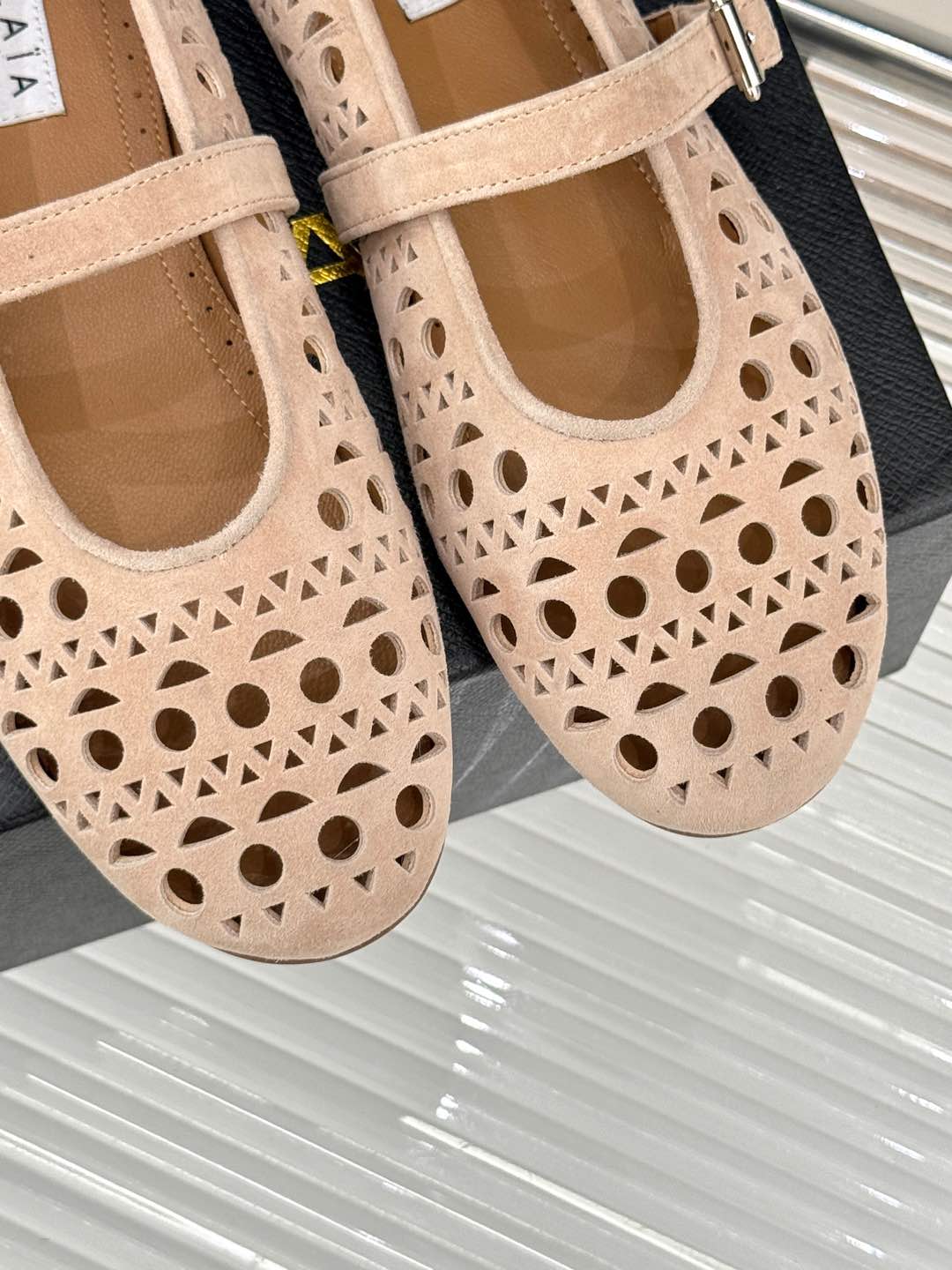 Alaia 2025 Criss Cross With Stud Ballet Flats Brown Beige Suede 293207