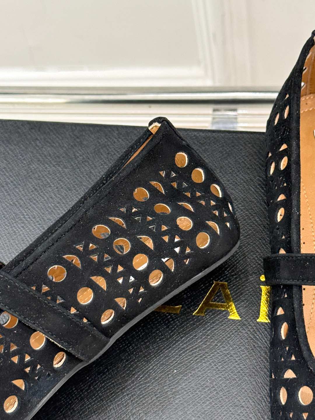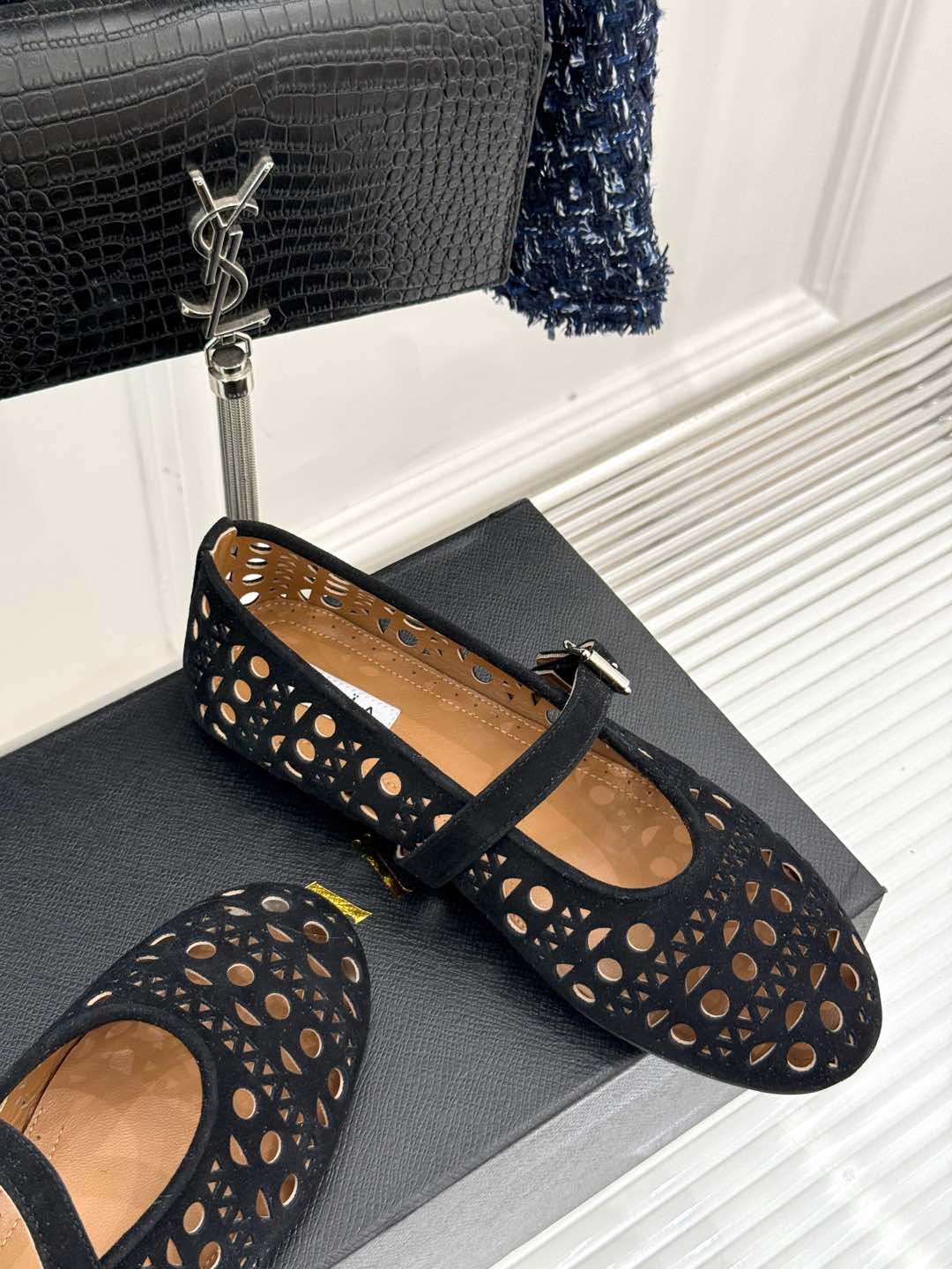 Alaia 2025 Criss Cross With Stud Ballet Flats Black Suede 293205