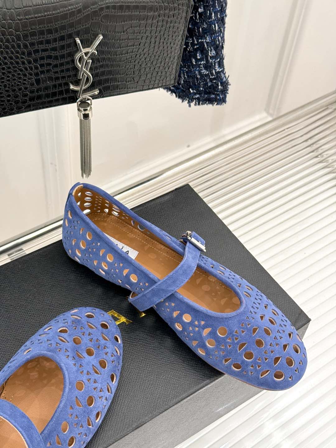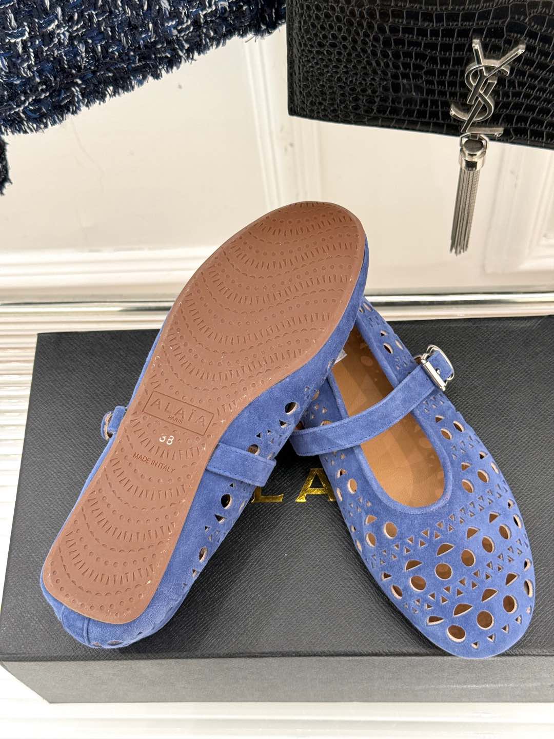 Alaia 2025 Criss Cross With Stud Ballet Flats Royal Blue Suede 293211