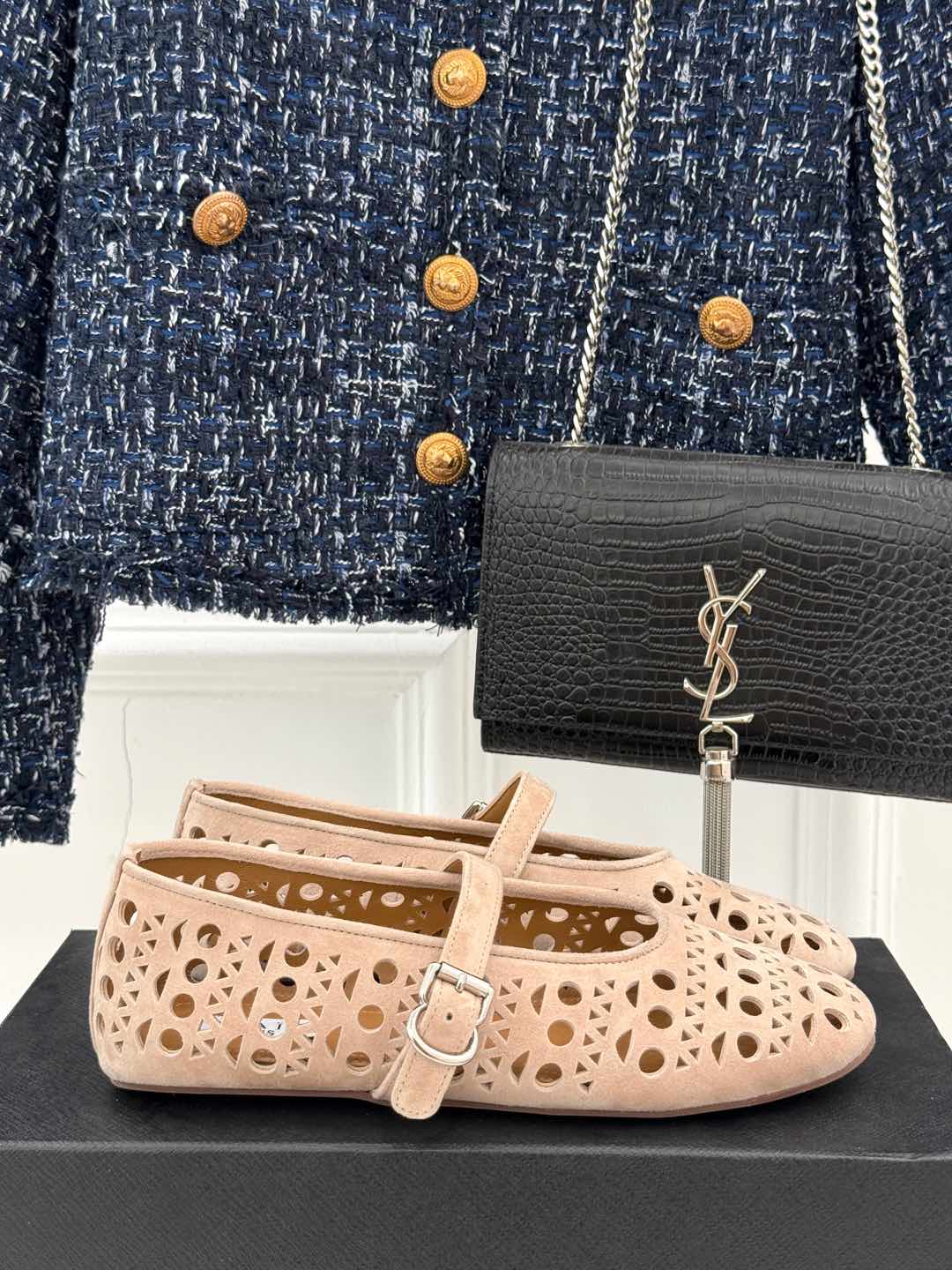 Alaia 2025 Criss Cross With Stud Ballet Flats Nude Suede 293206