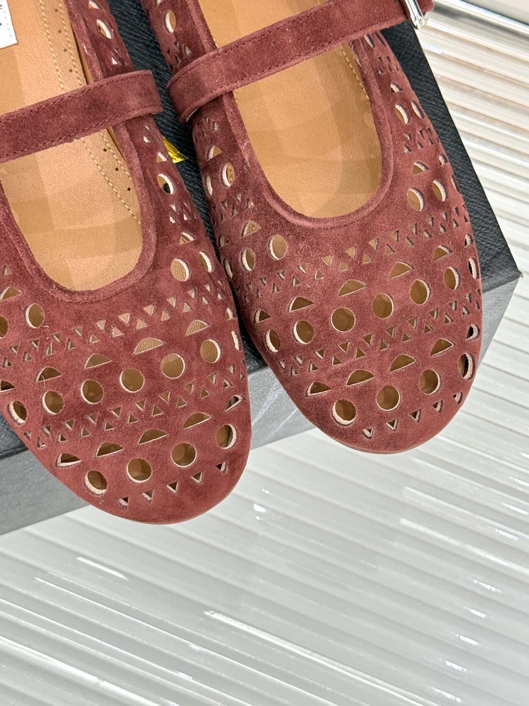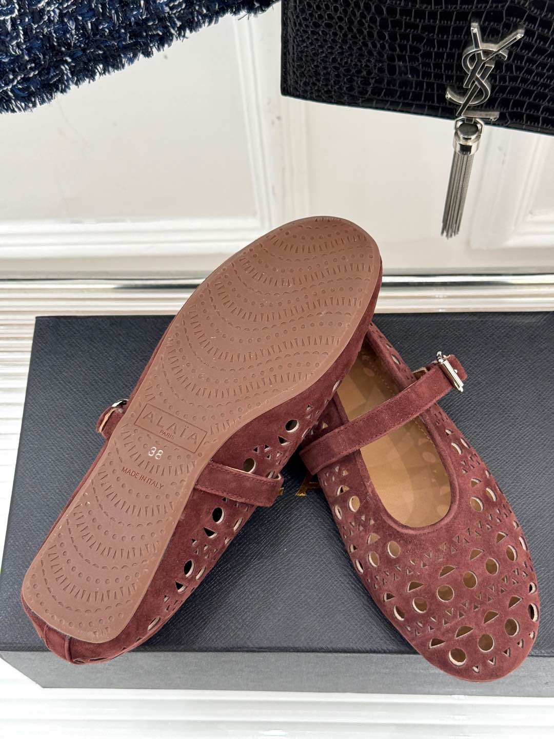 Alaia 2025 Criss Cross With Stud Ballet Flats Brown Suede 293213