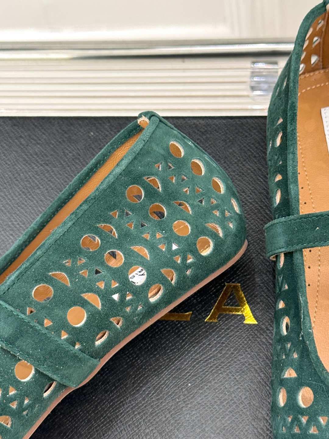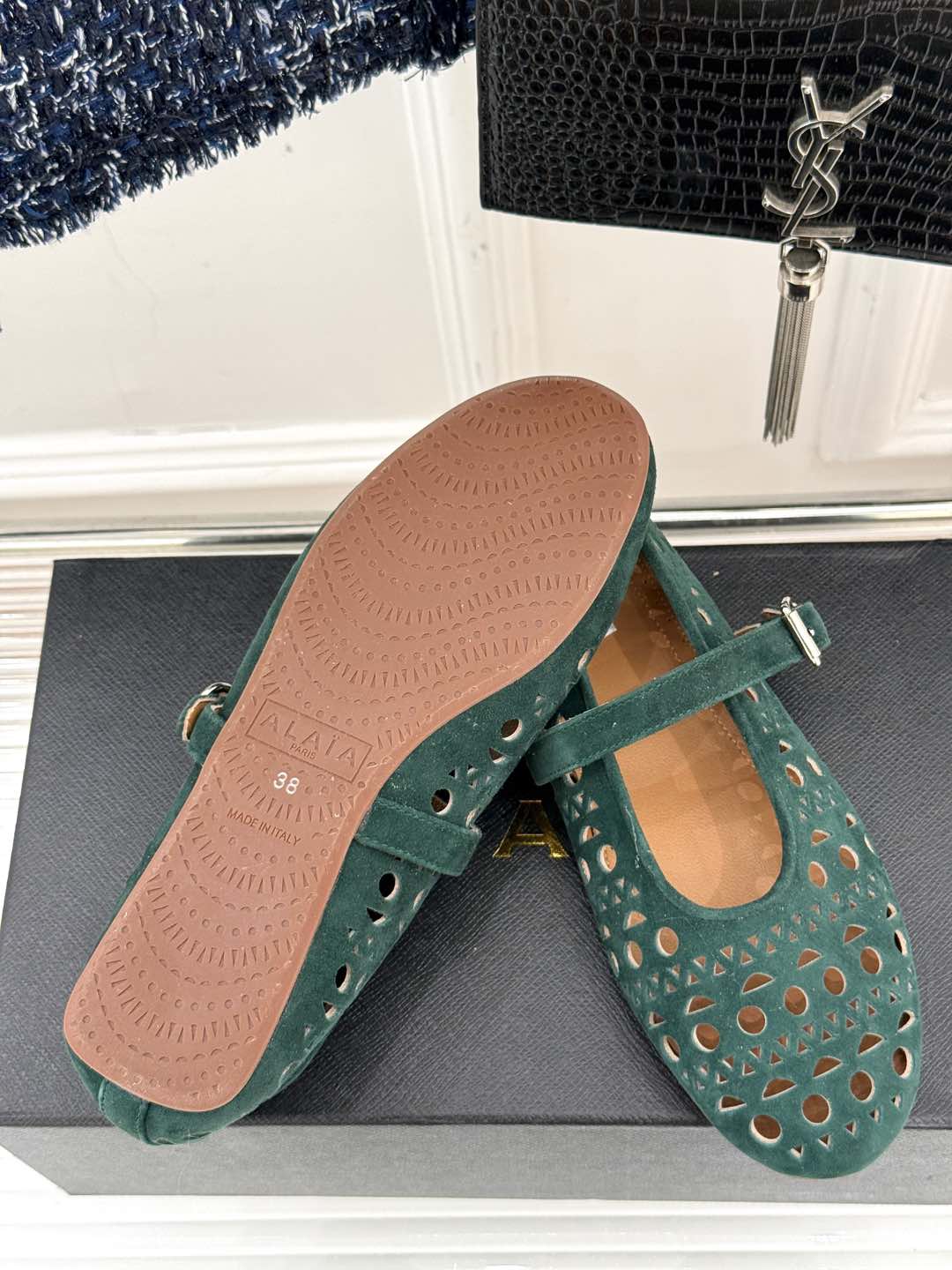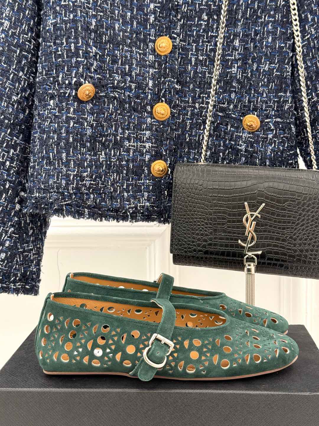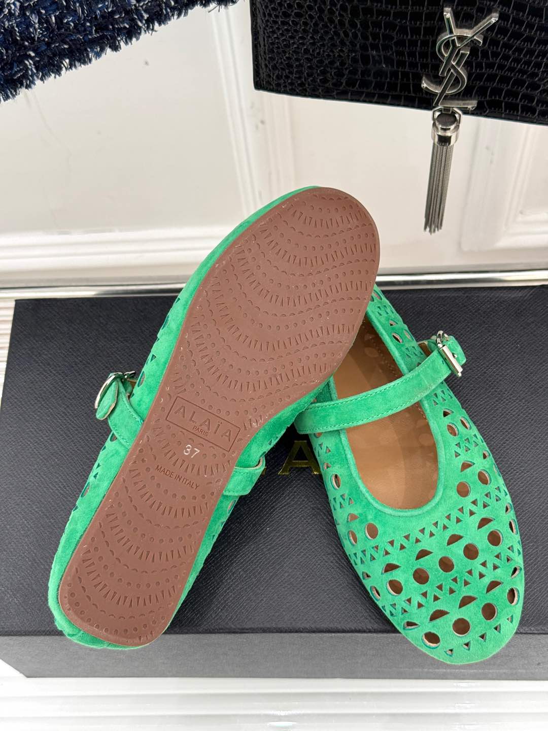 Alaia 2025 Criss Cross With Stud Ballet Flats Emerald Green Suede 293208
