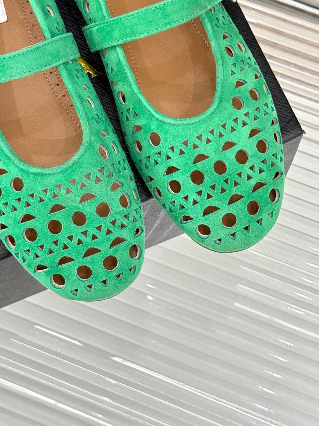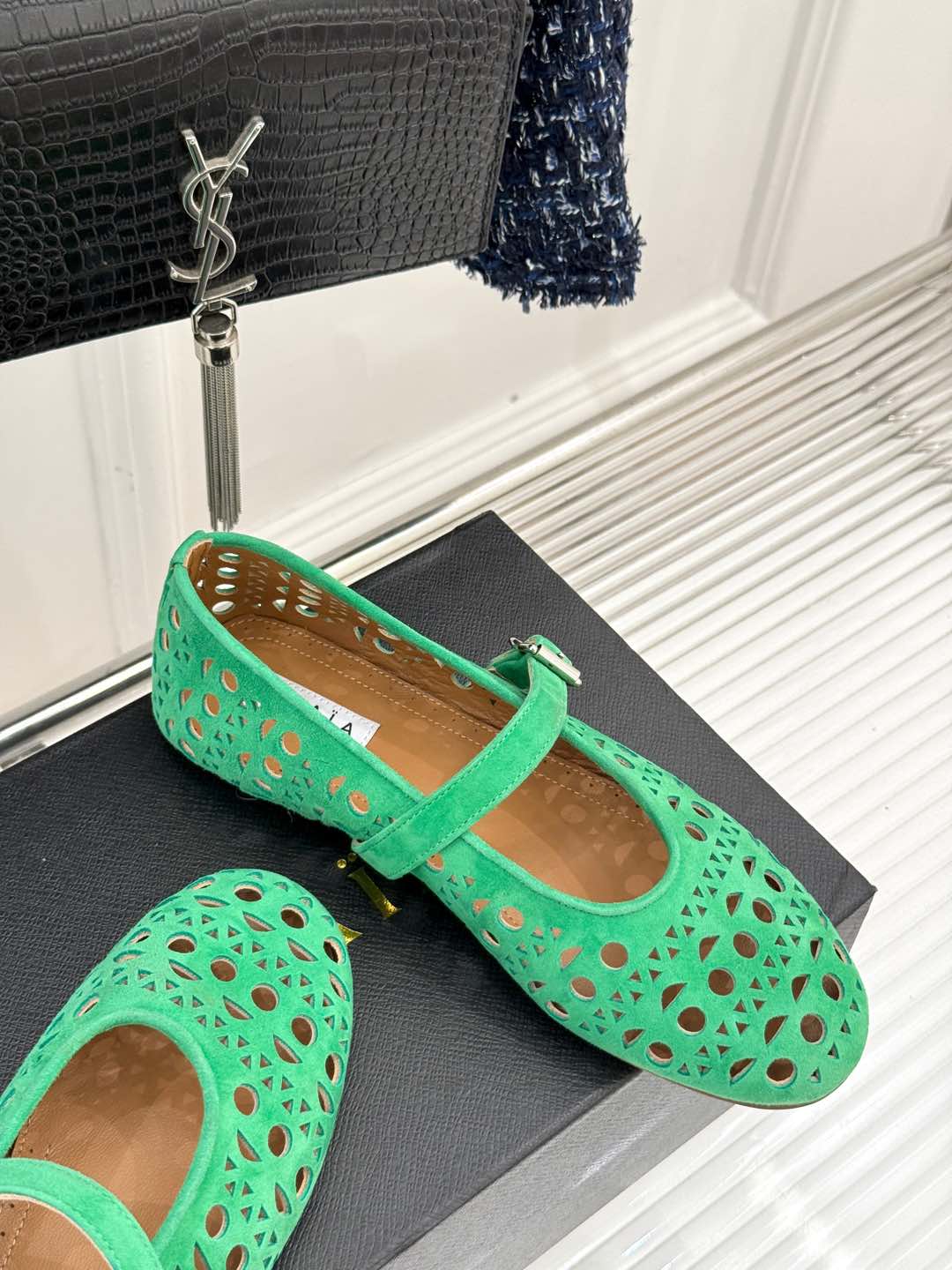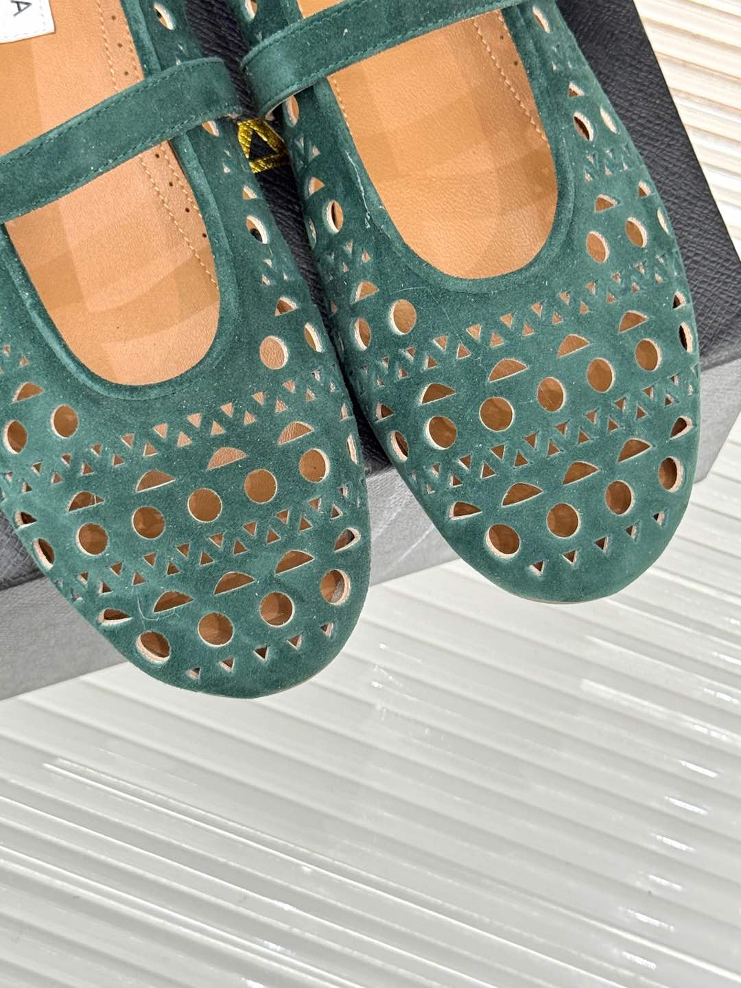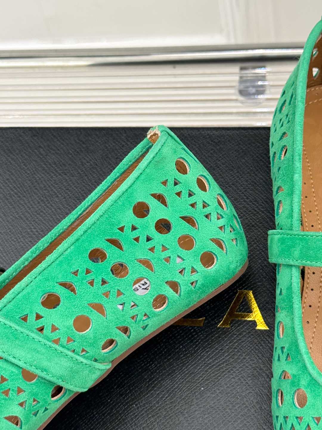 Alaia 2025 Criss Cross With Stud Ballet Flats Emerald Green Suede 293208