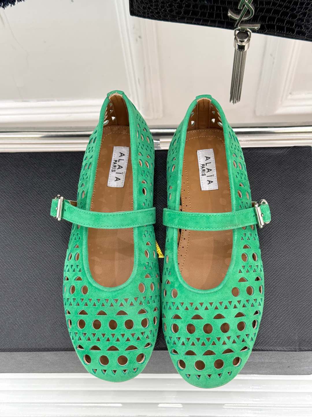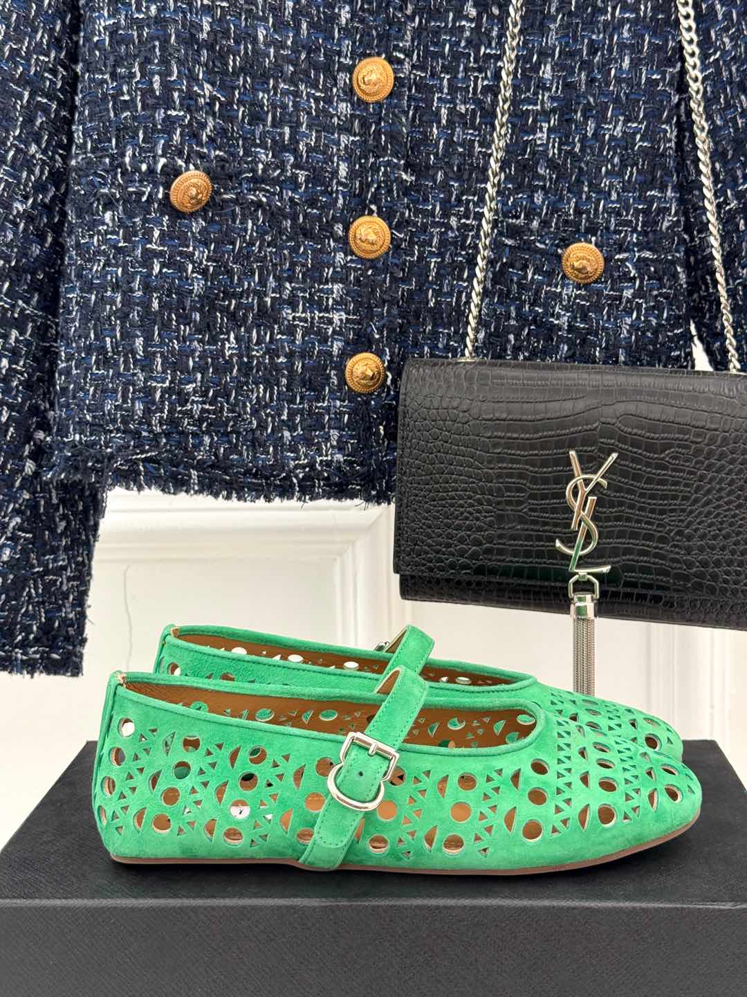 Alaia Women's Ballet Flat Shamrock Green Suede 293221