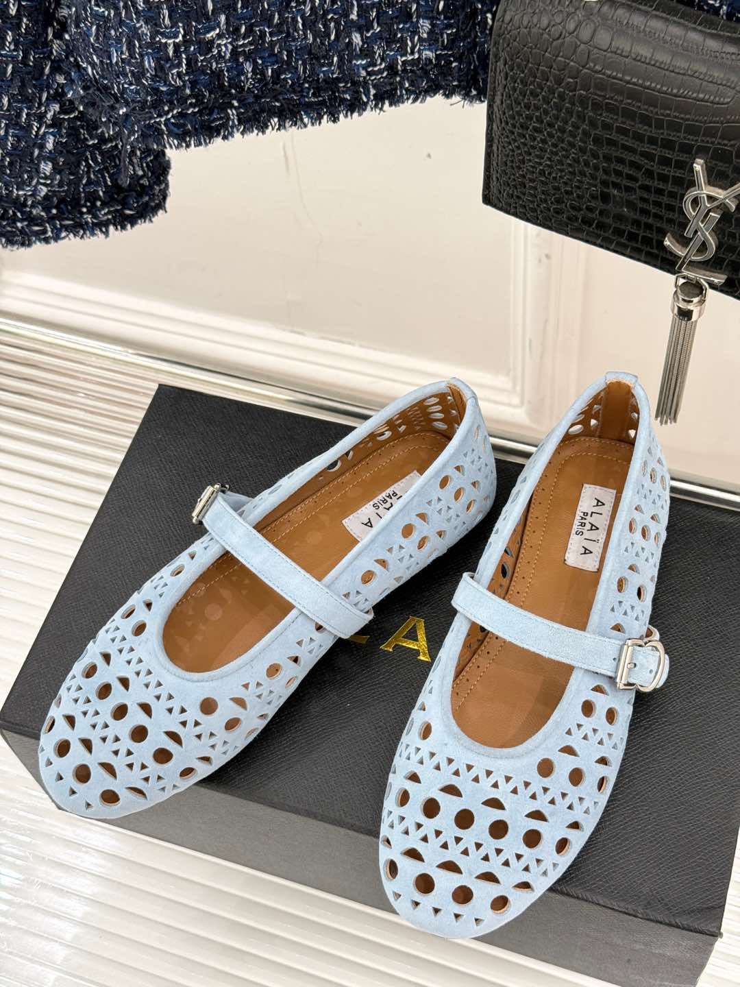 Alaia Women's Ballet Flat Light Blue Suede 293224
