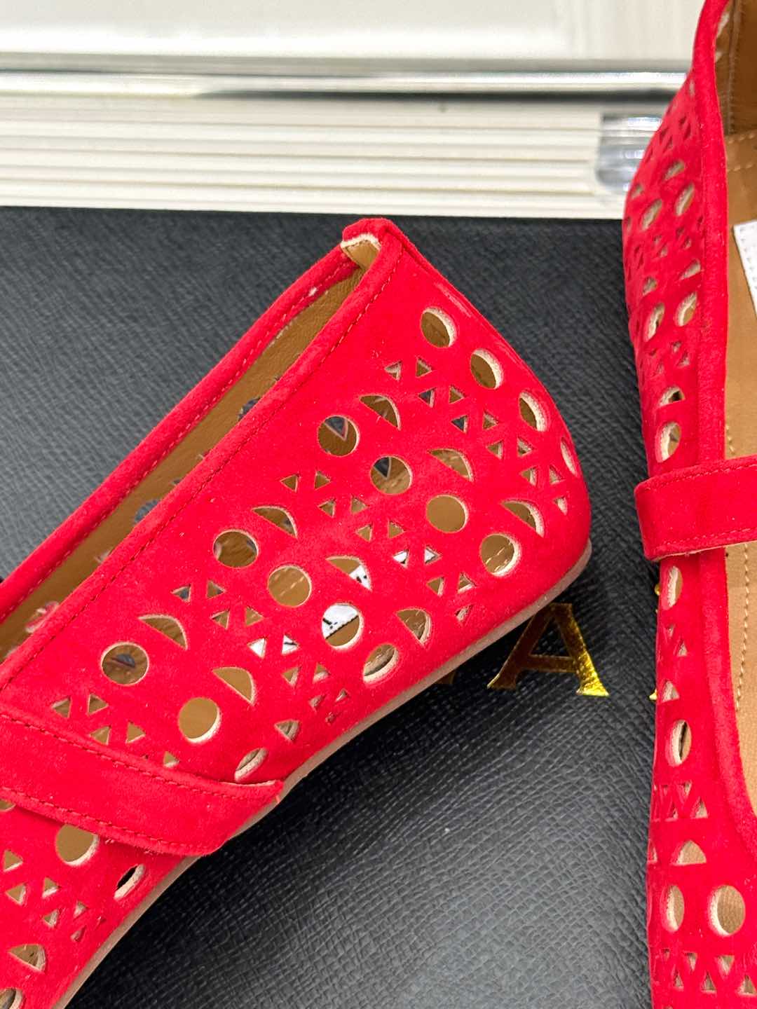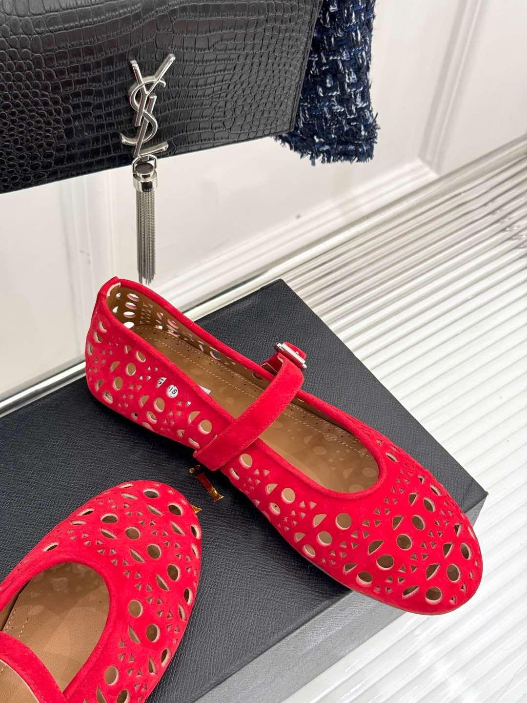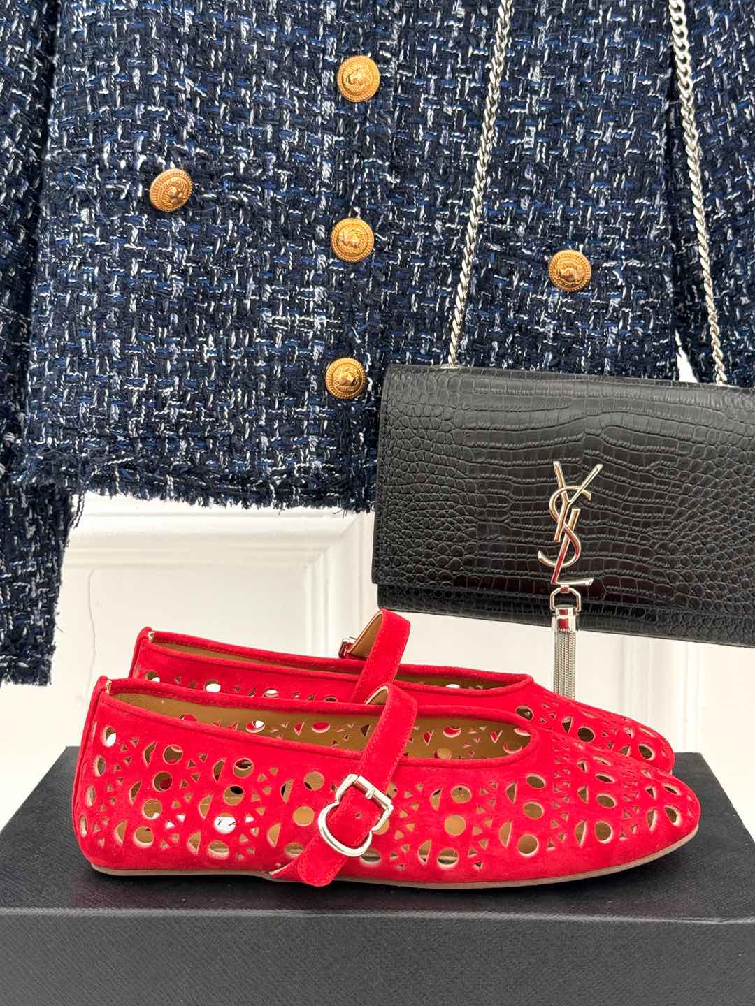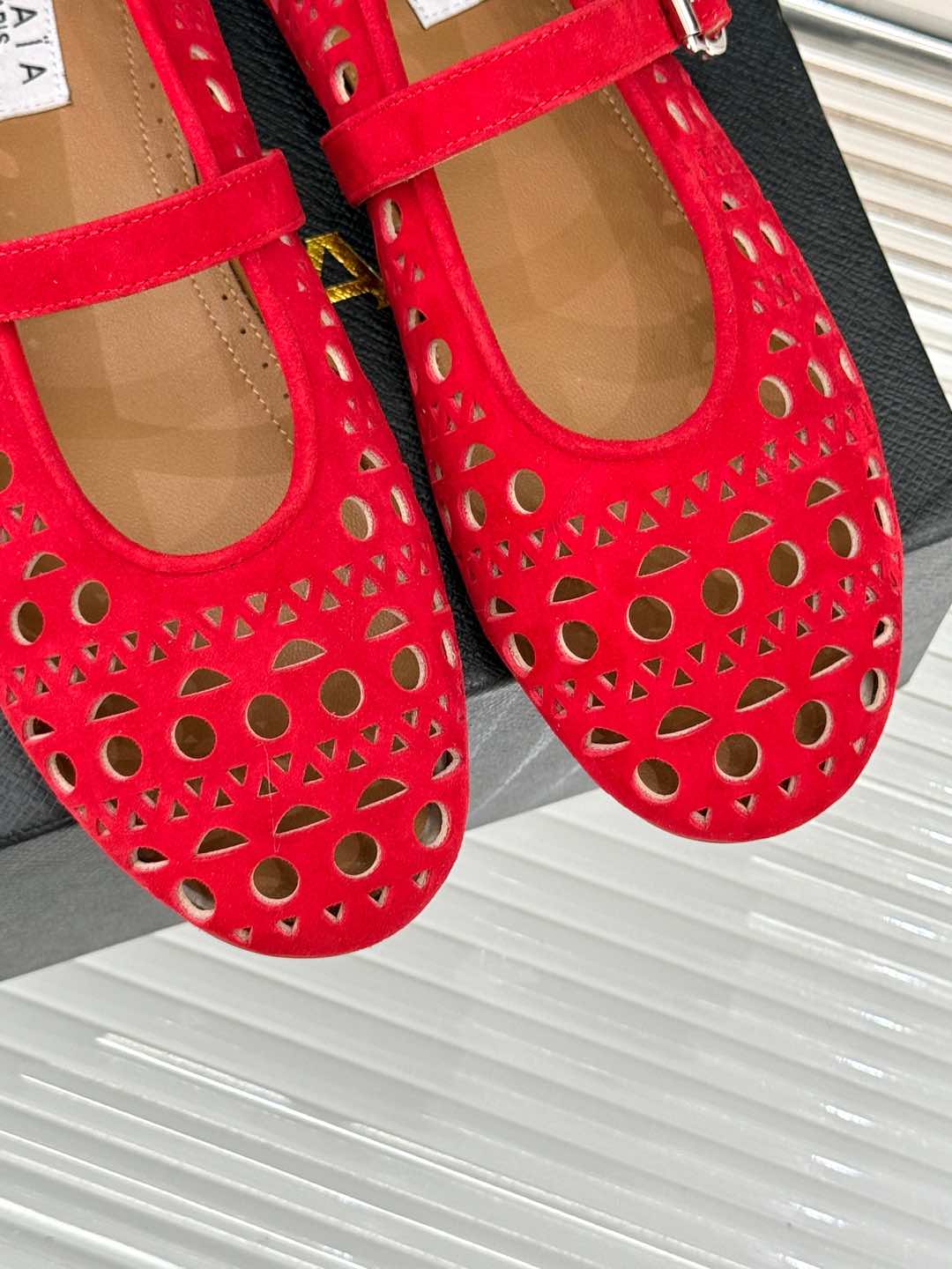 Alaia 2025 Criss Cross With Stud Ballet Flats Red Suede 293214
