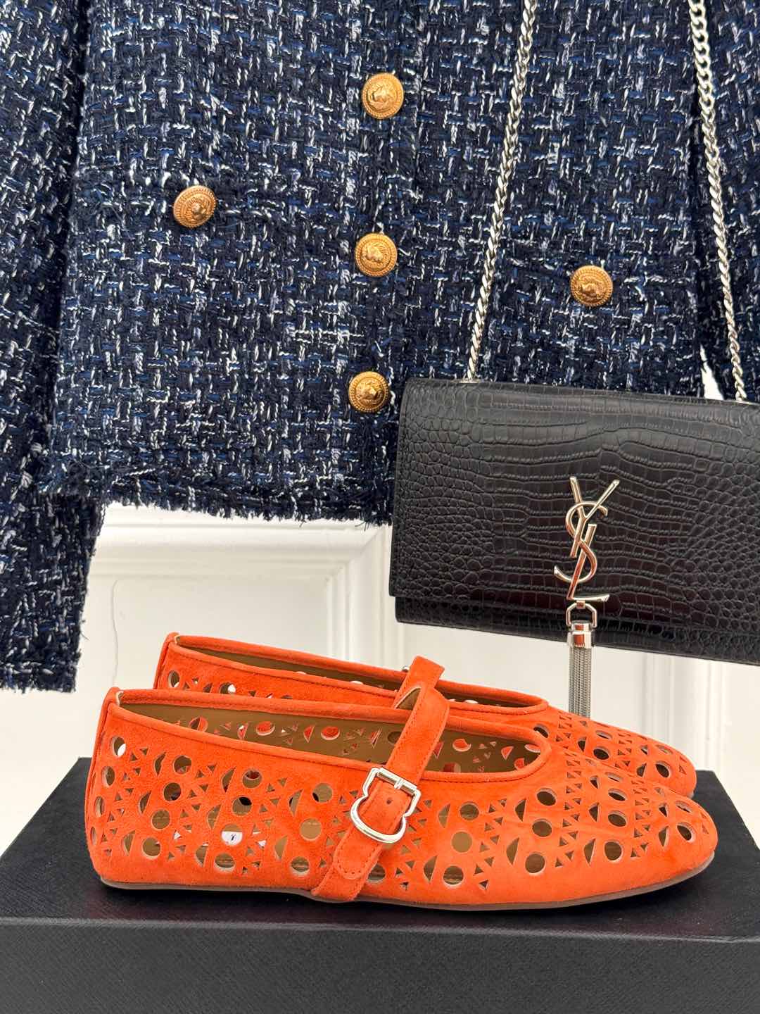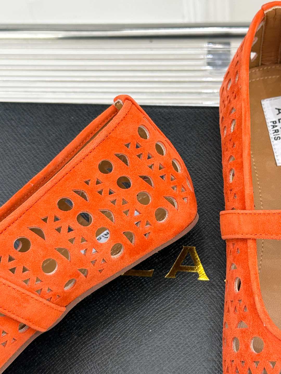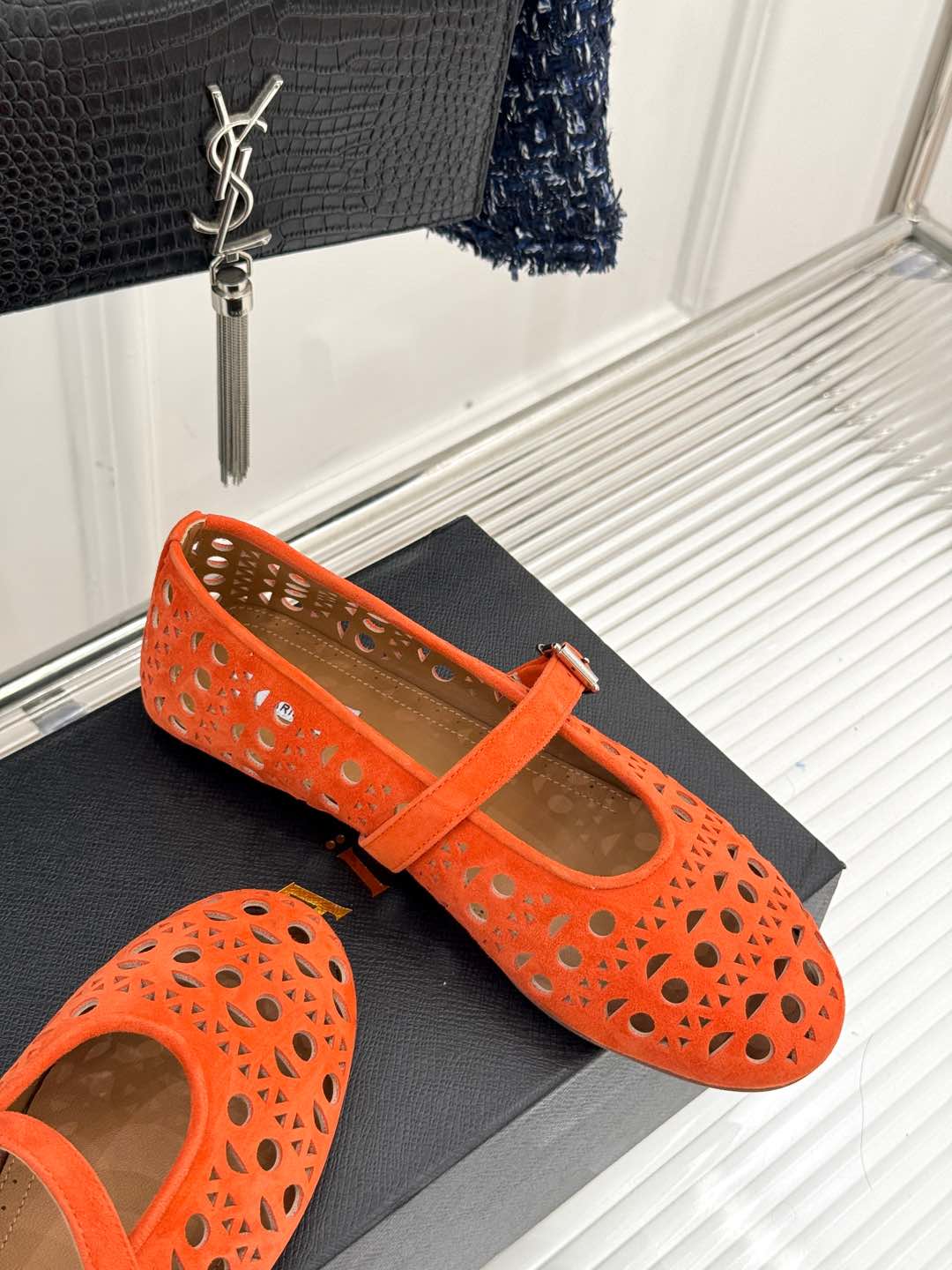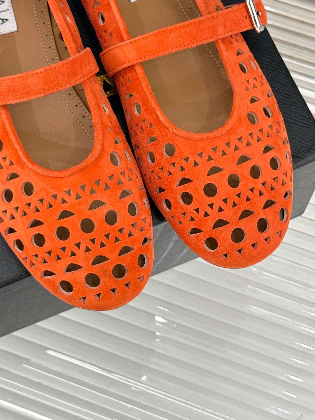 Alaia 2025 Criss Cross With Stud Ballet Flats Orange Suede 293215