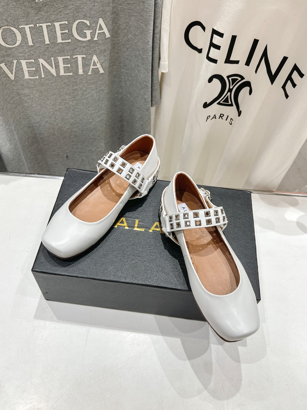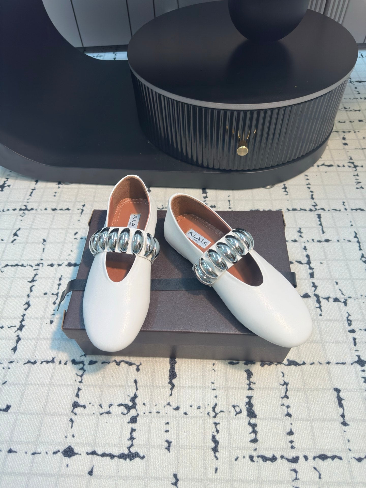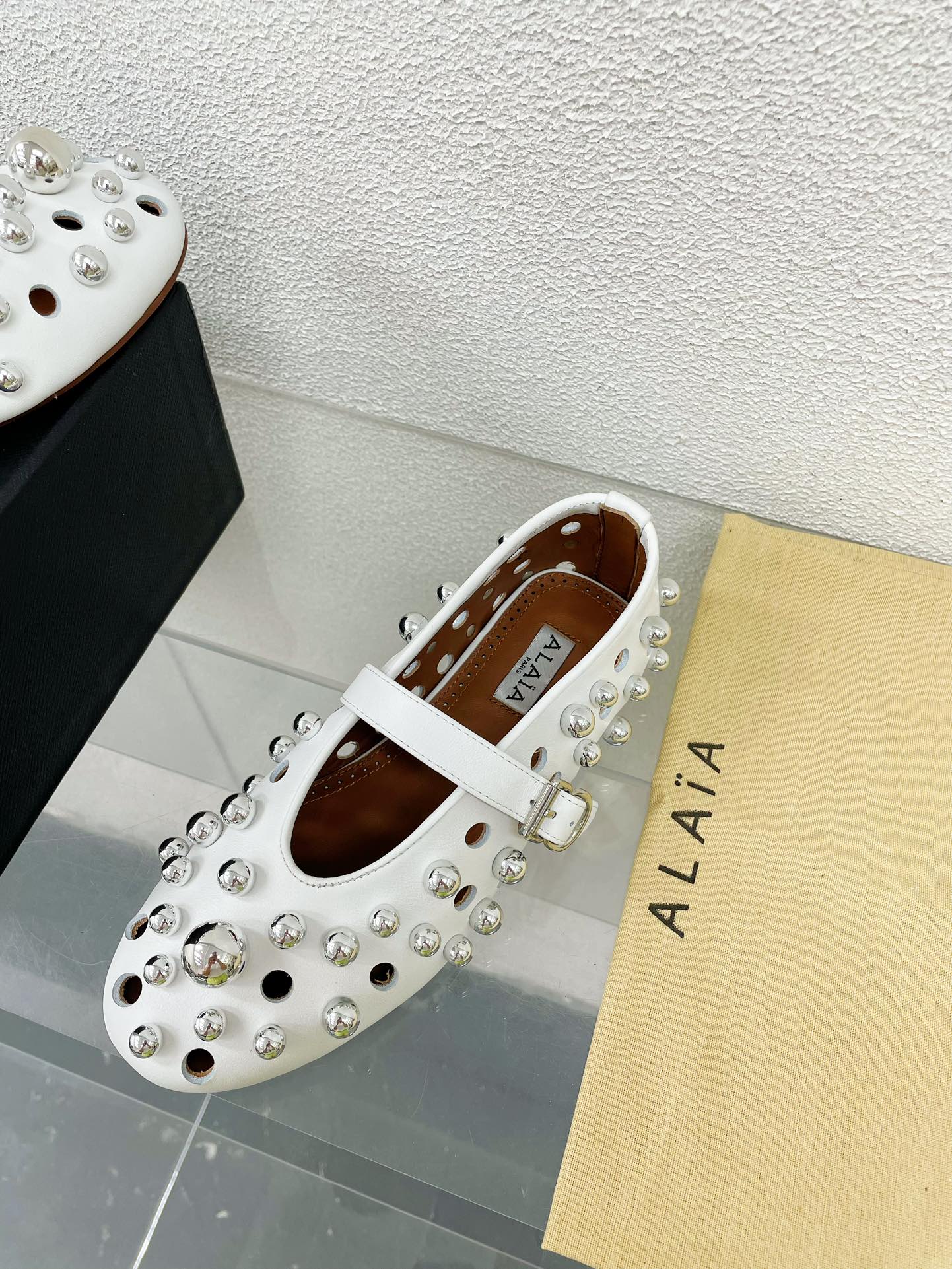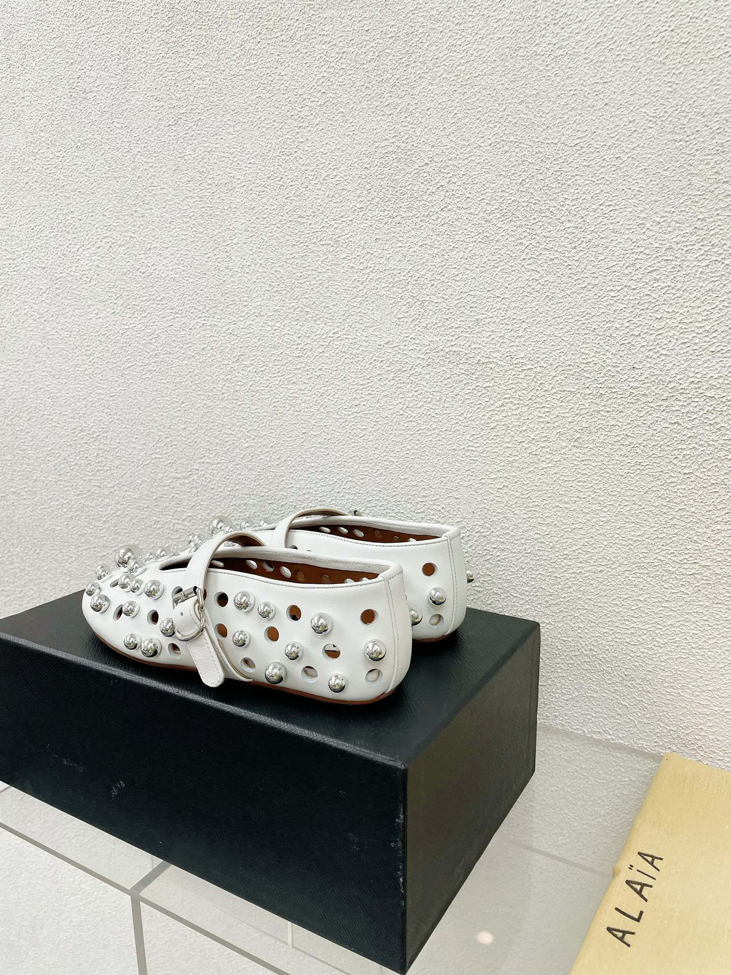 Alaia 25 Biker Ballet Flats White Calfskin 303734