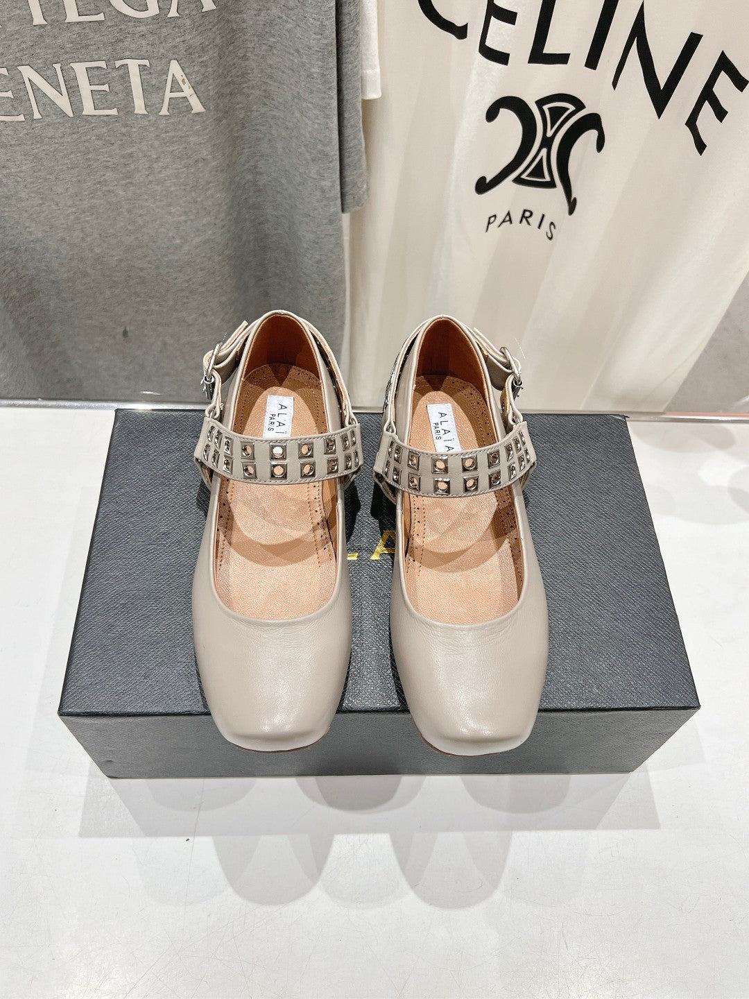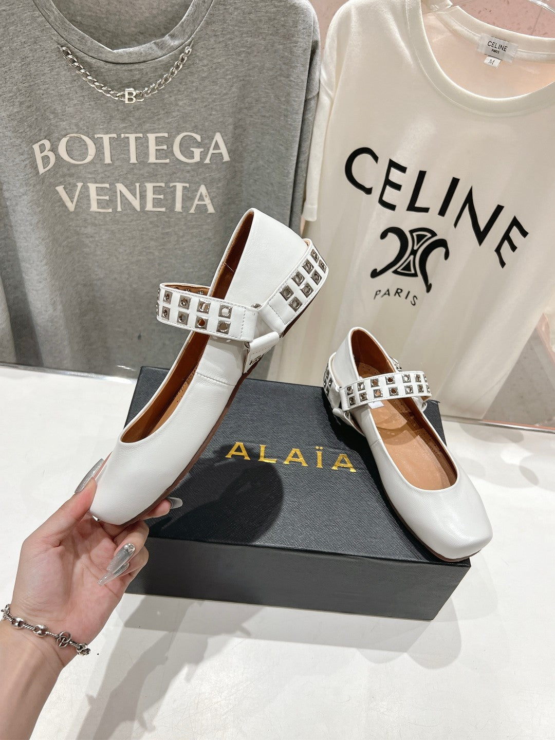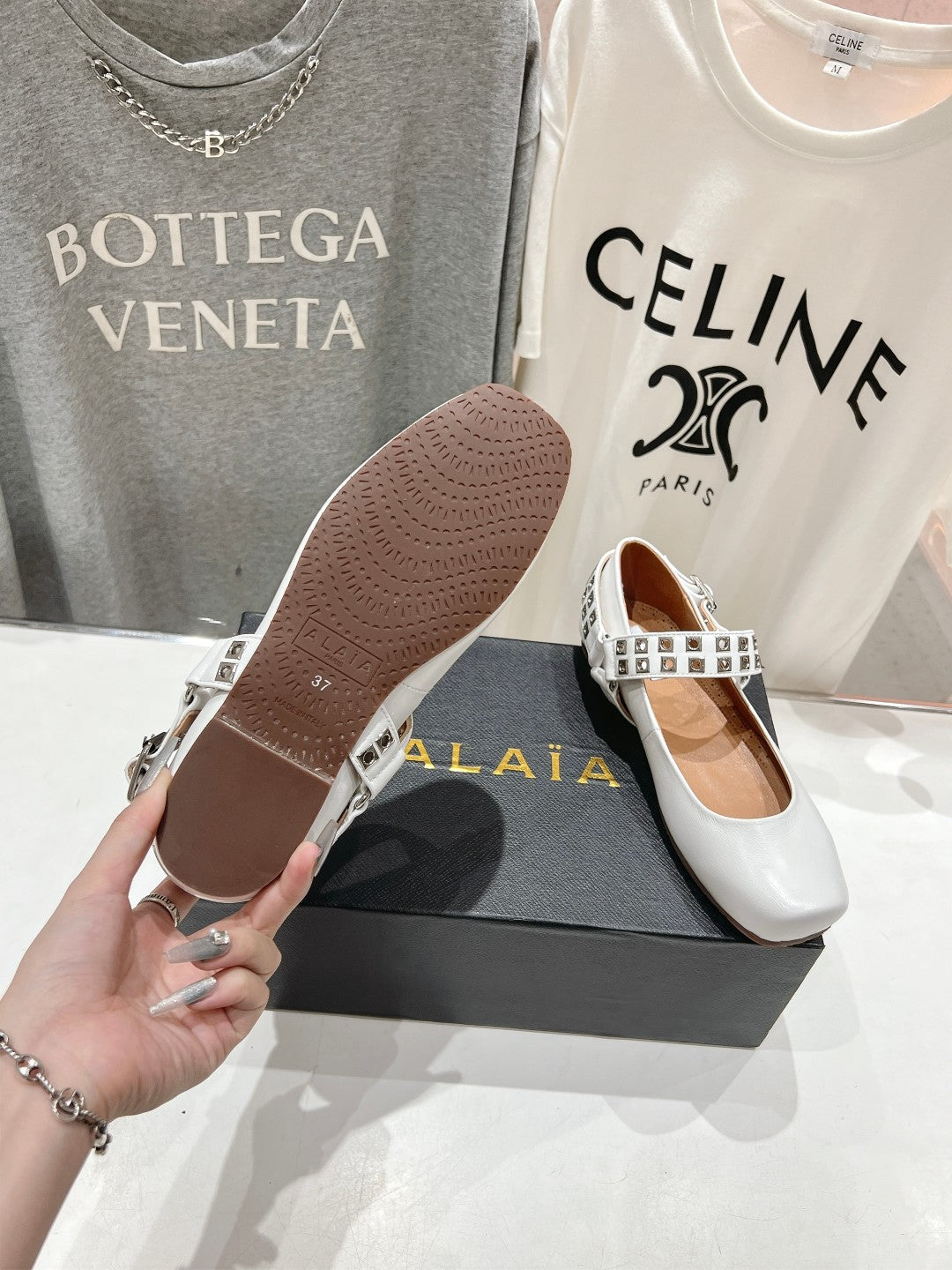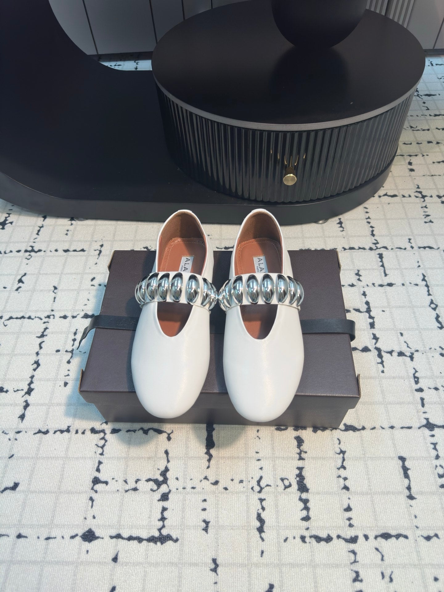 Alaia 25 Biker Ballet Flats White Calfskin 303734