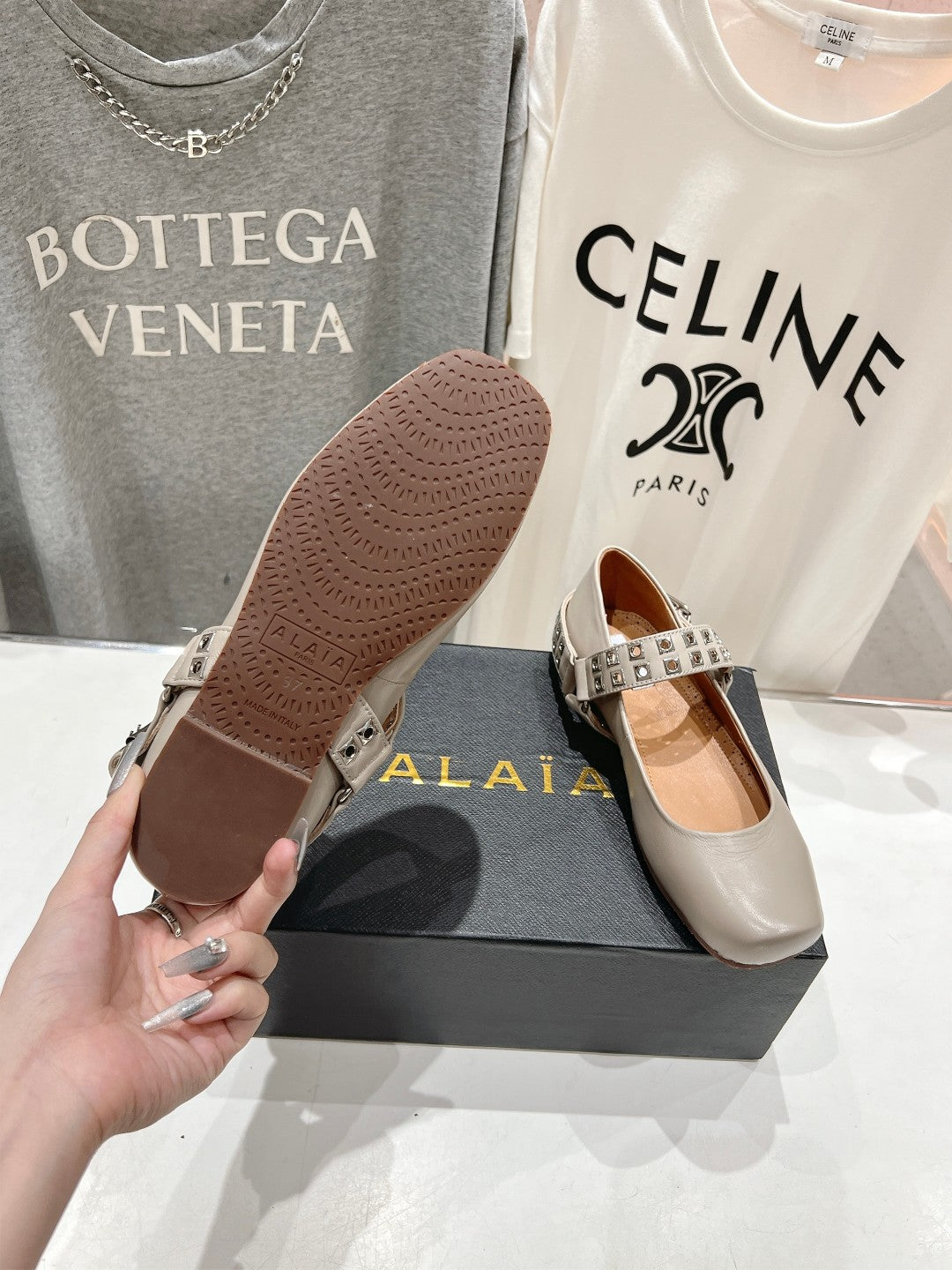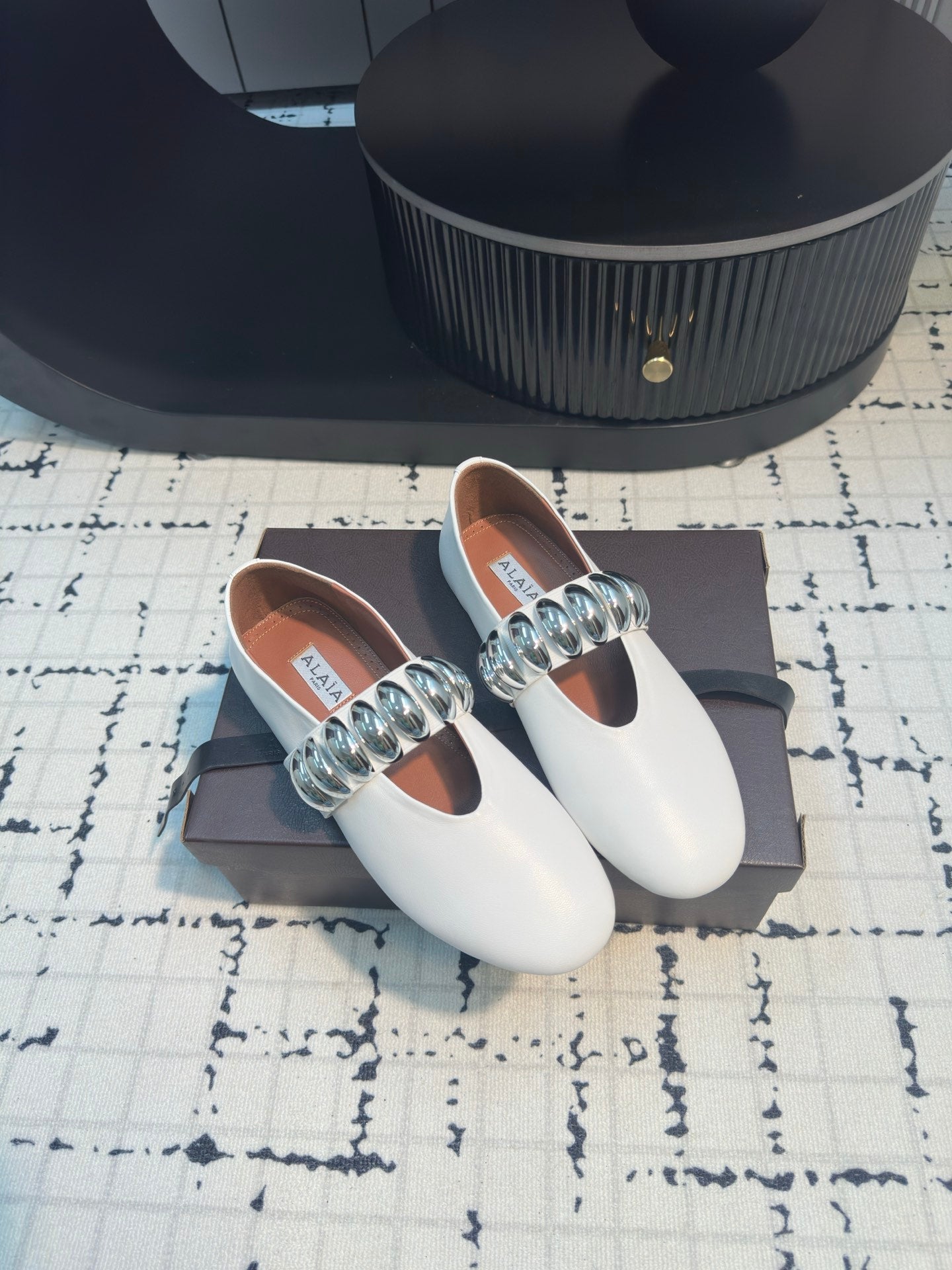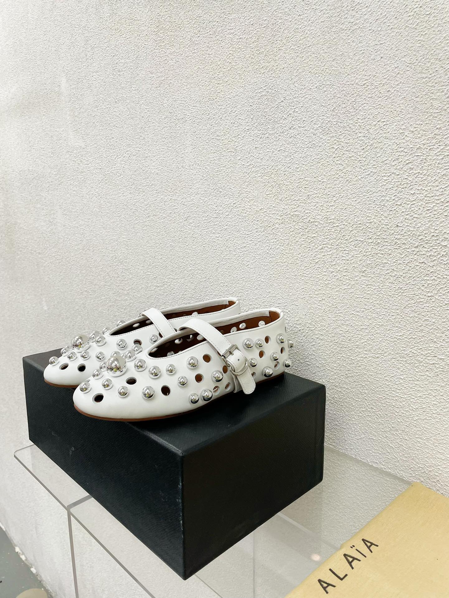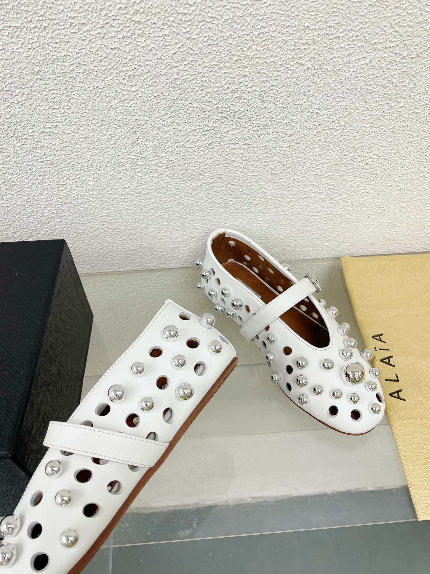 Alaia 25 Vienne With Strass Ballet Flats White Lambskin 303721