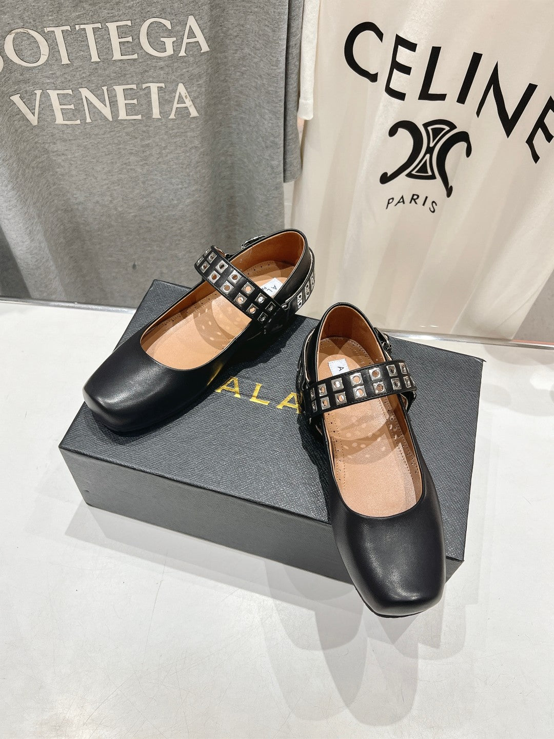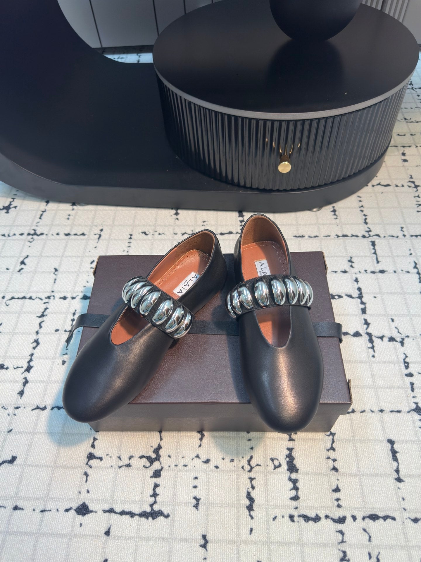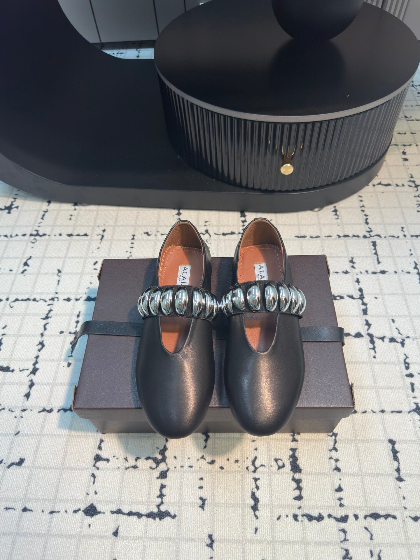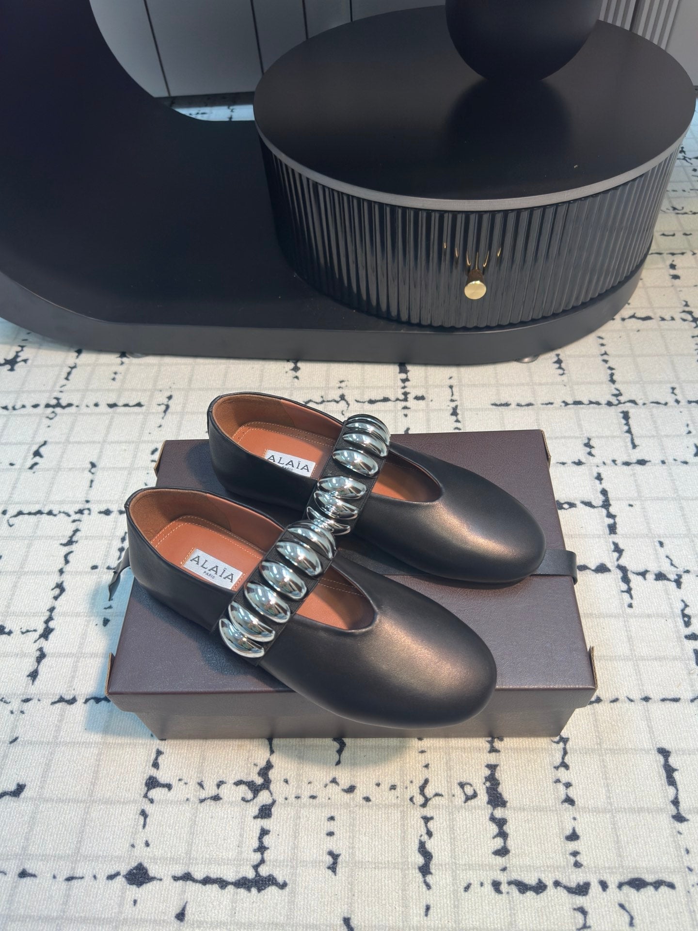 Alaia Strass Ballet Flats In Black Calfskin With Fleece Lining 926043