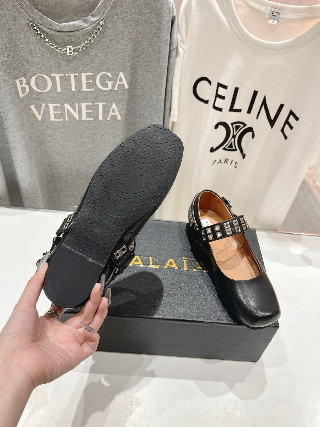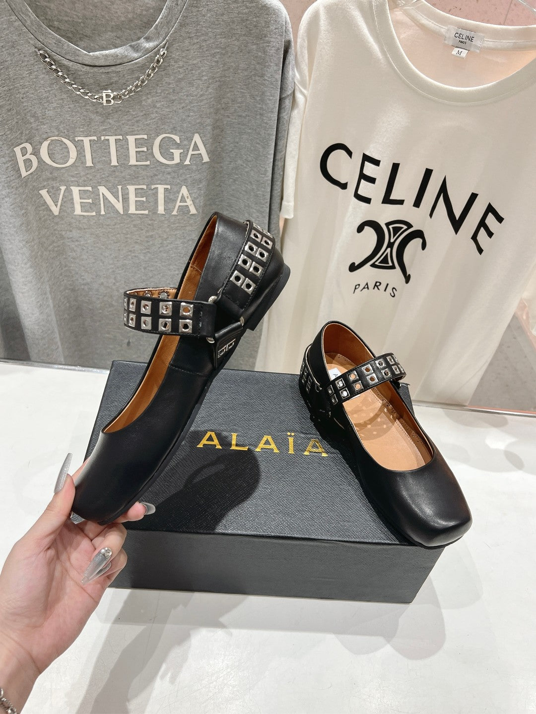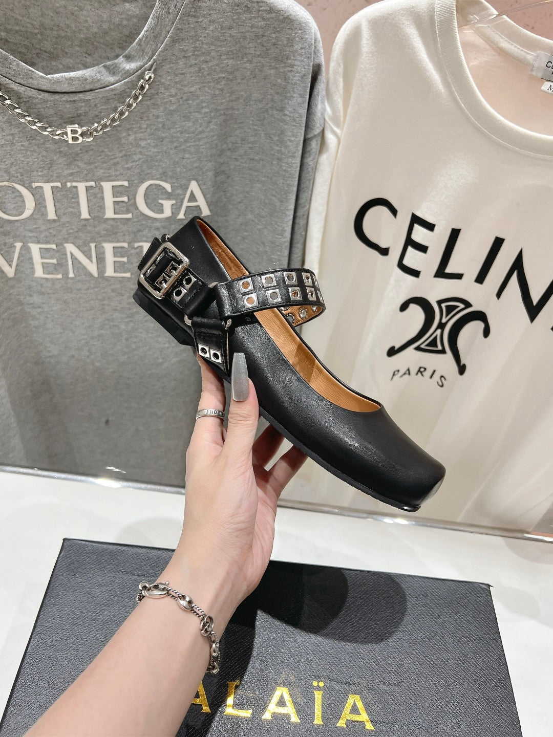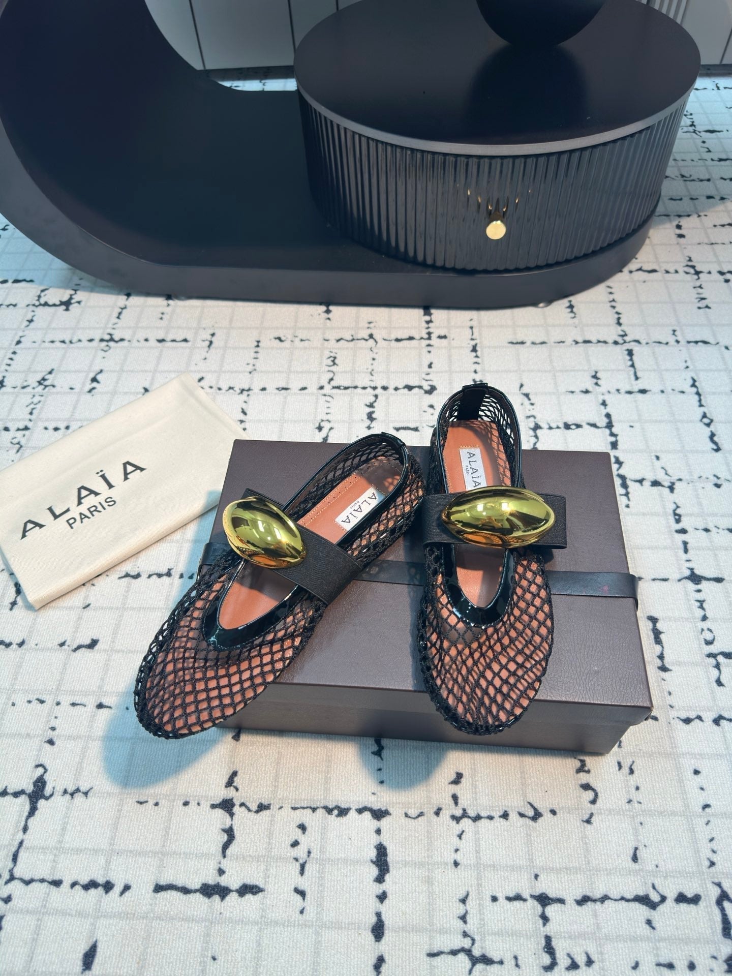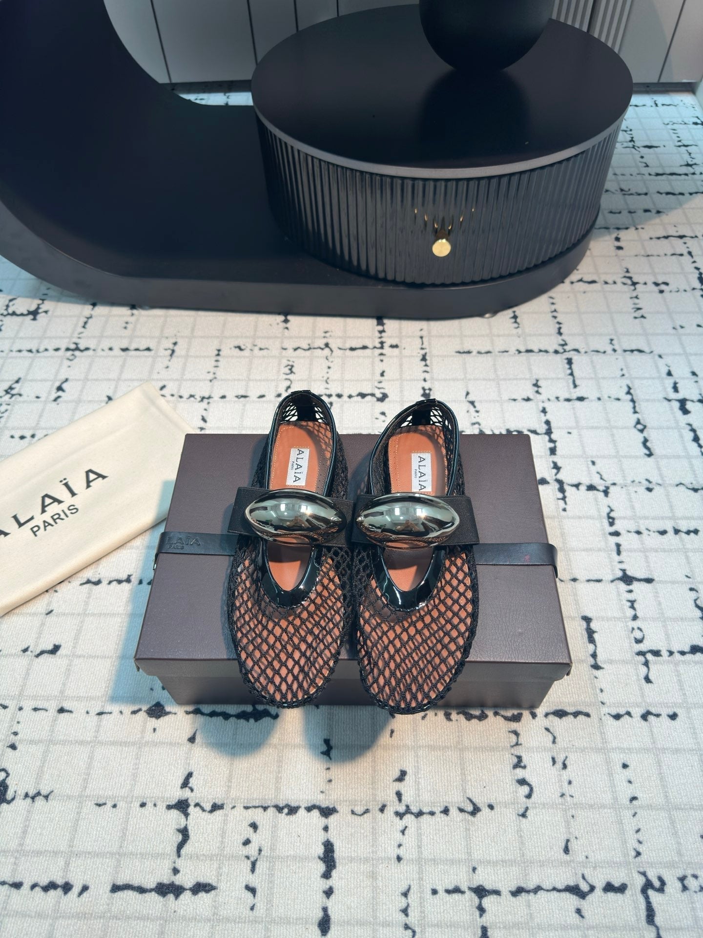Alaia Strass Ballet Flats In Black Calfskin With Fleece Lining 926043