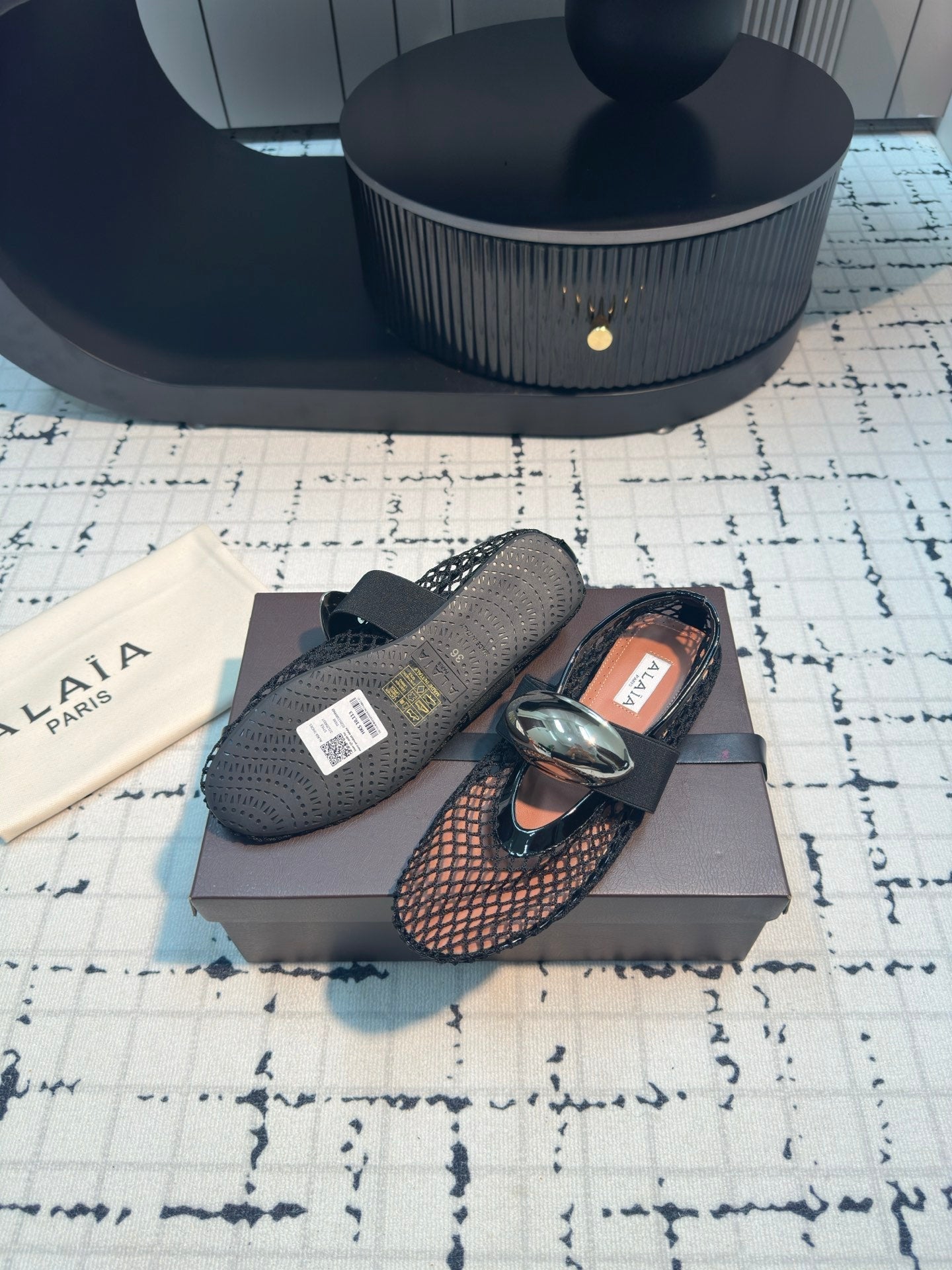 ALAIA BALLET FLATS IN LIGHT PINK MESH FISHNET