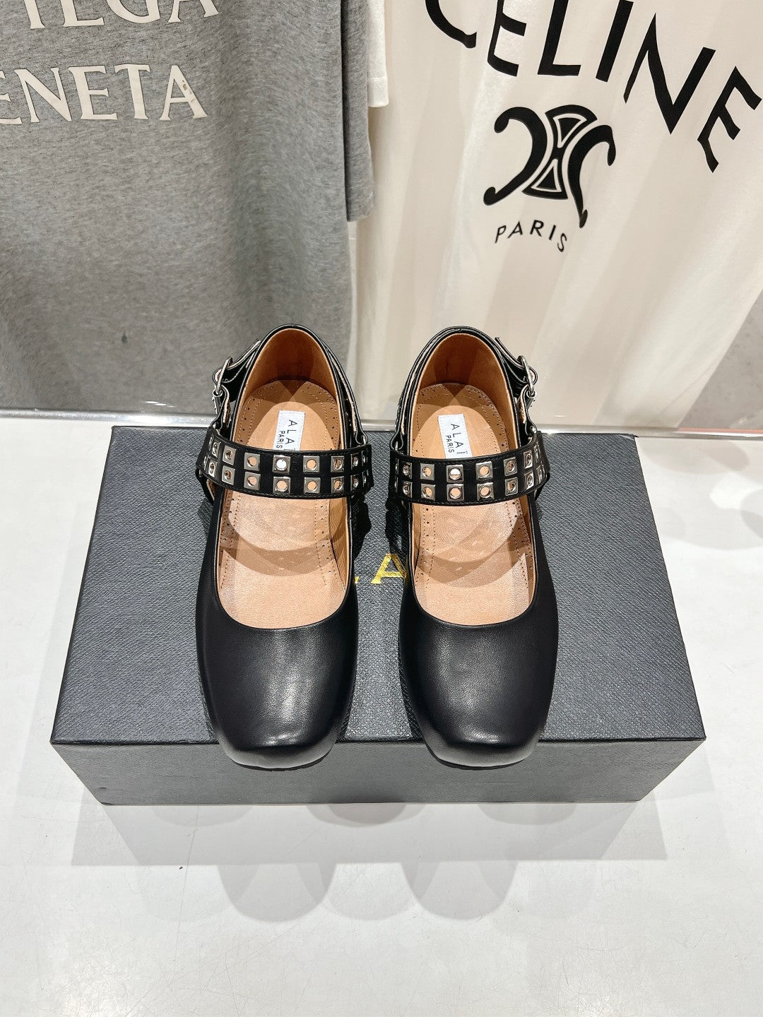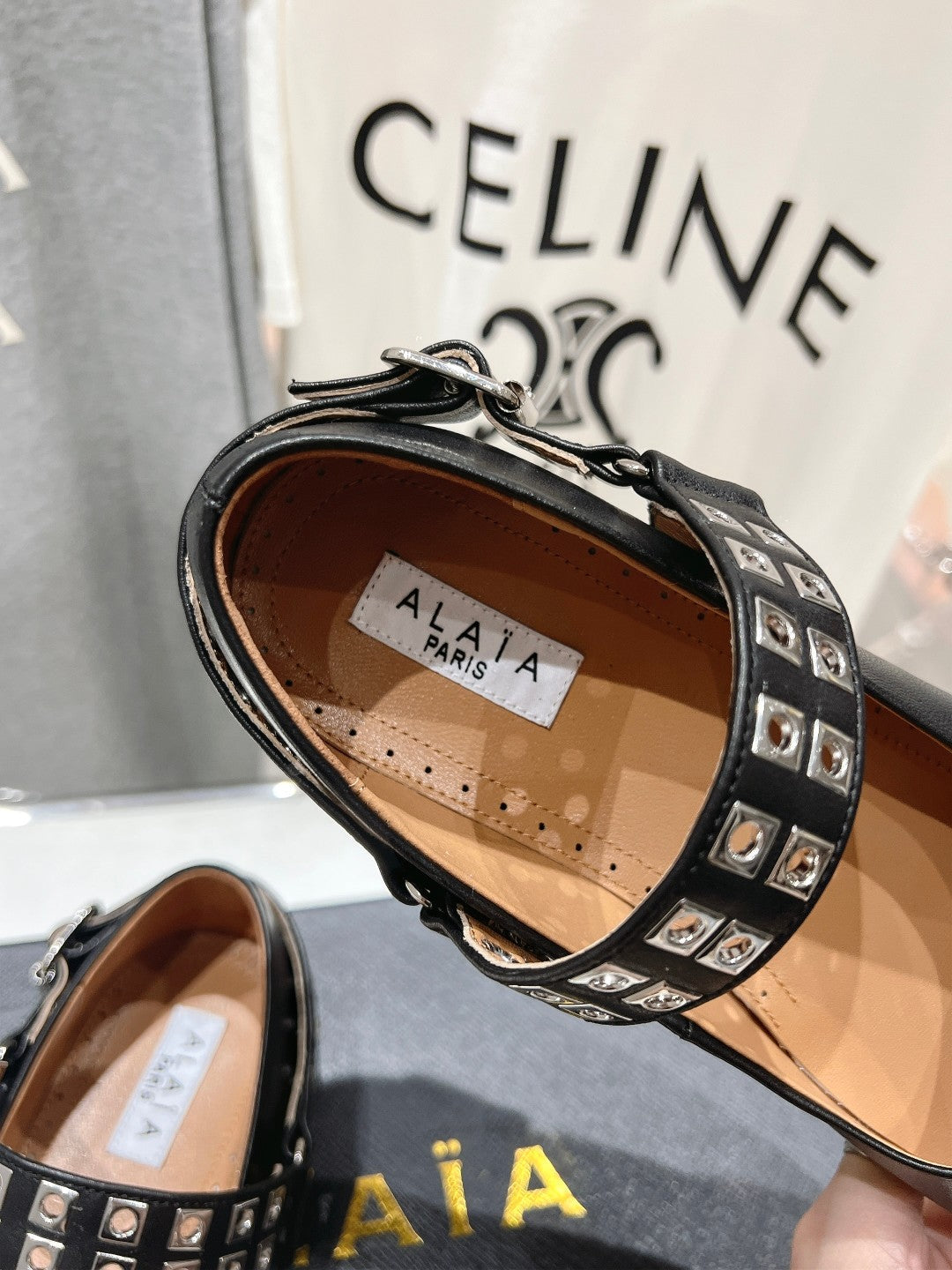 Alaia 25 Vienne With Strass Ballet Flats Black Lambskin 303722