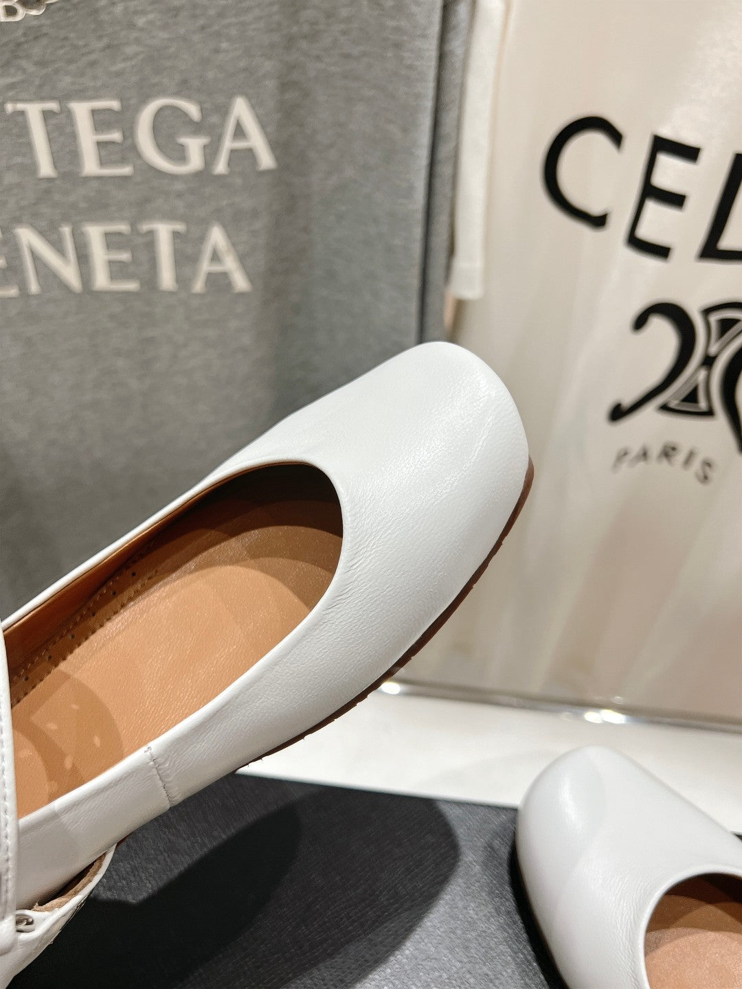 Alaila Criss Cross Ballet Flats In White Lambskin 996057