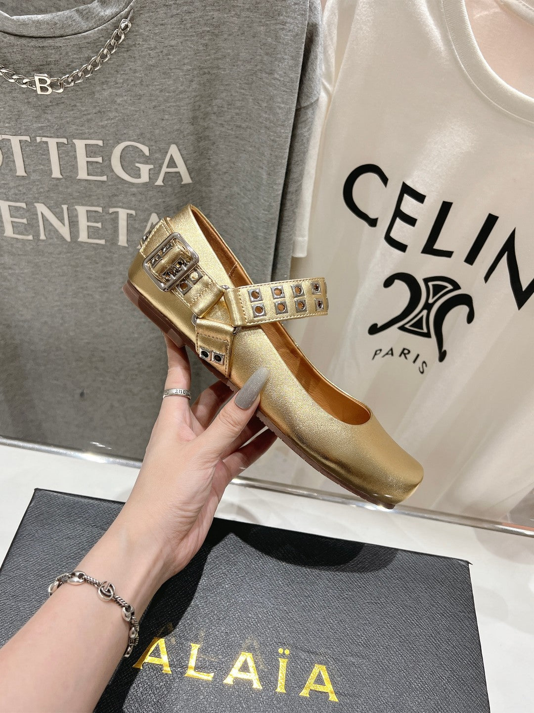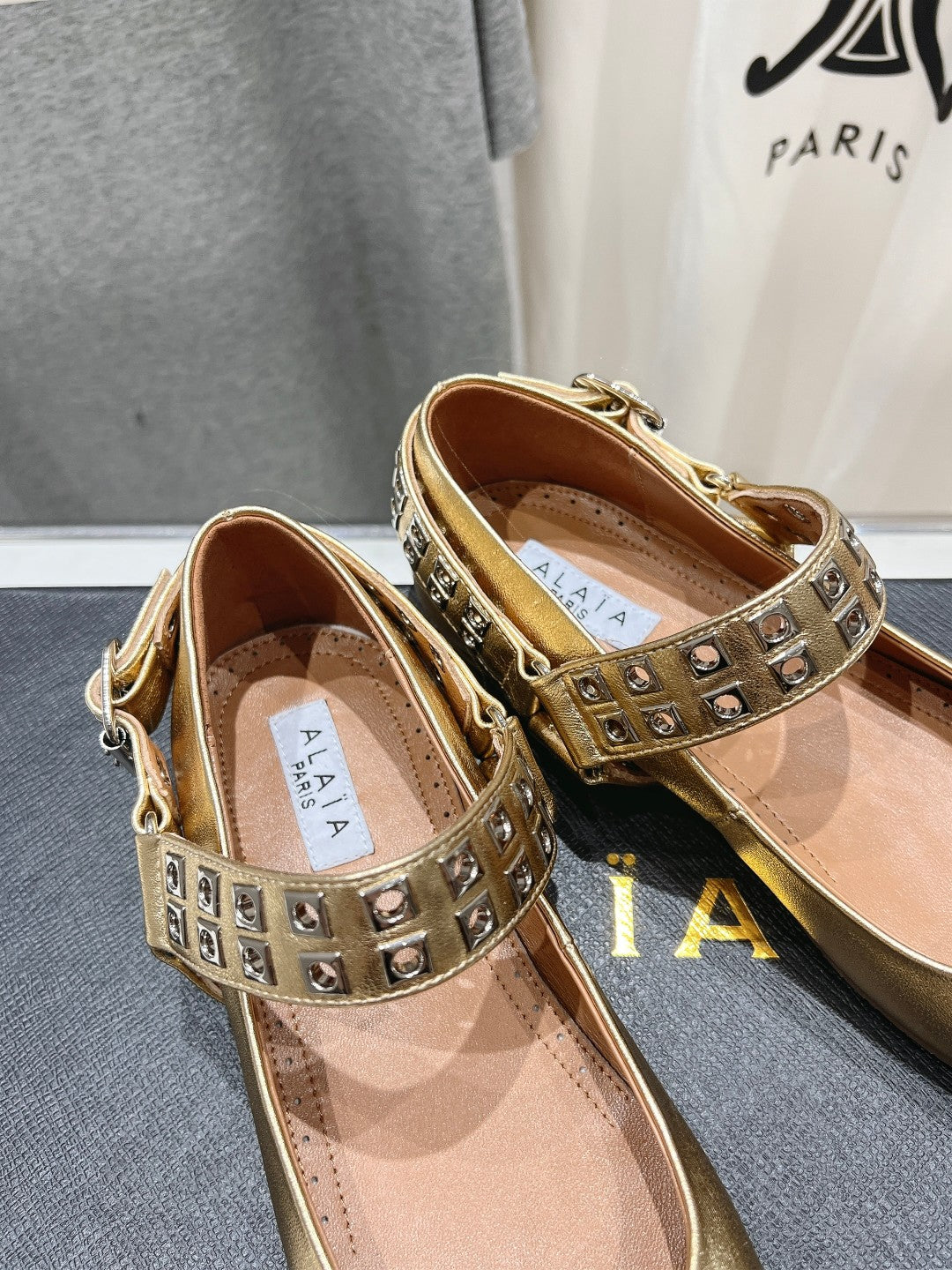 Alaia Ballet Flats In Gold Woven Cowhide 102288