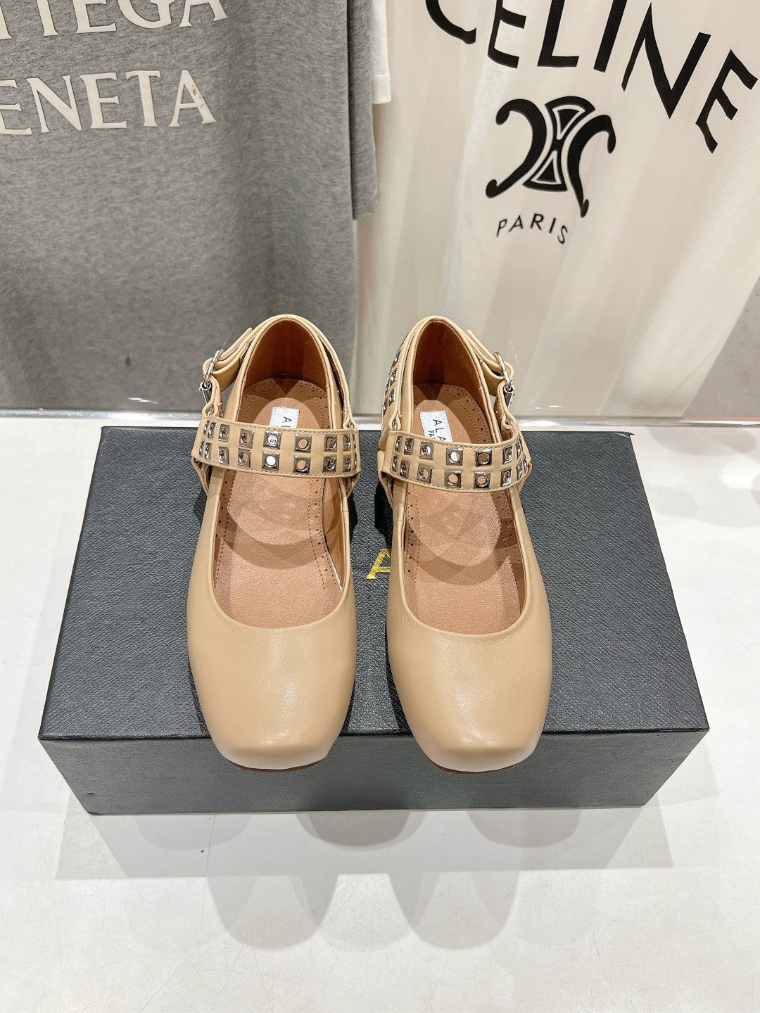 Alaila Criss Cross Ballet Flats In Beige Lambskin 996059