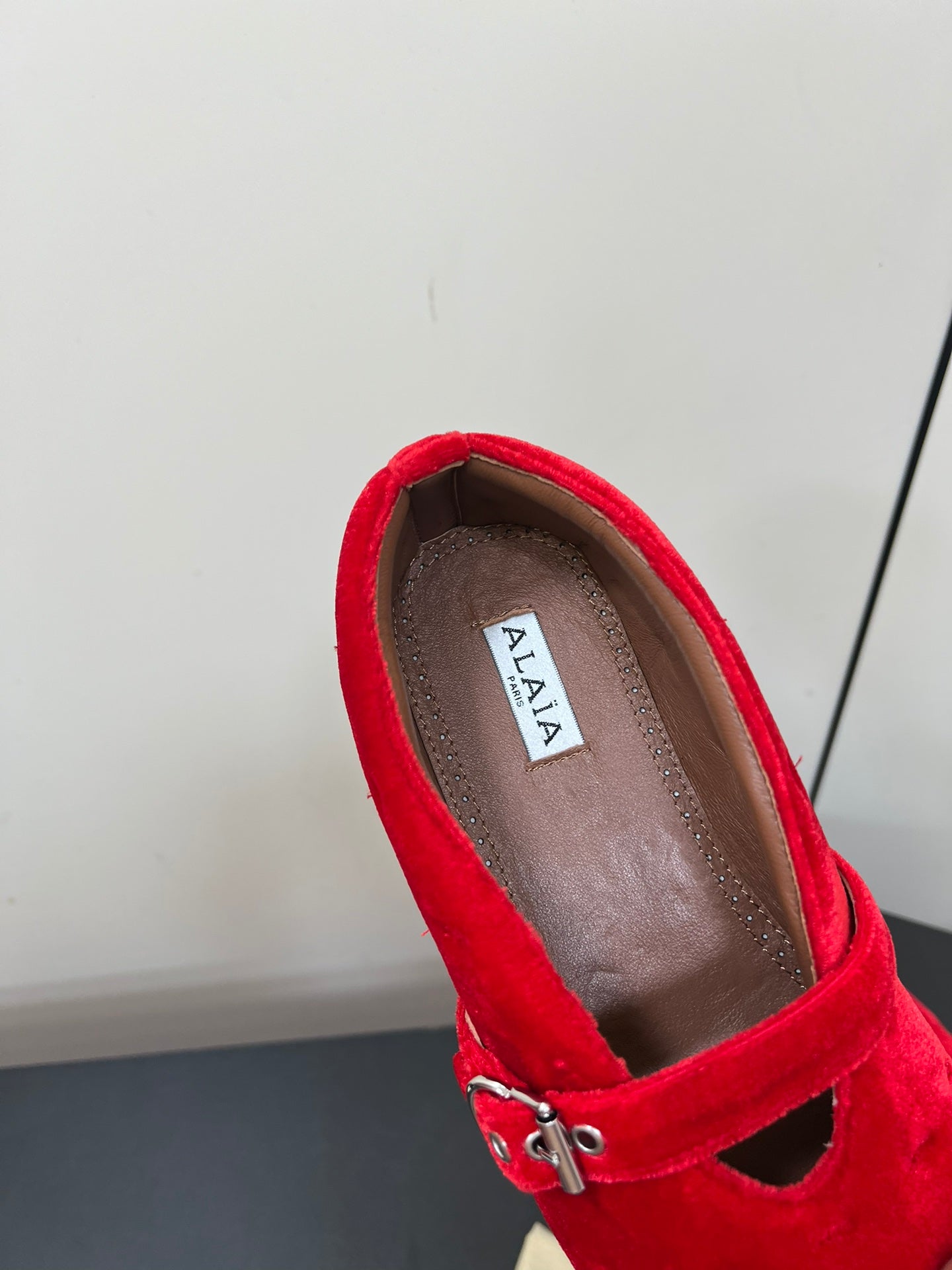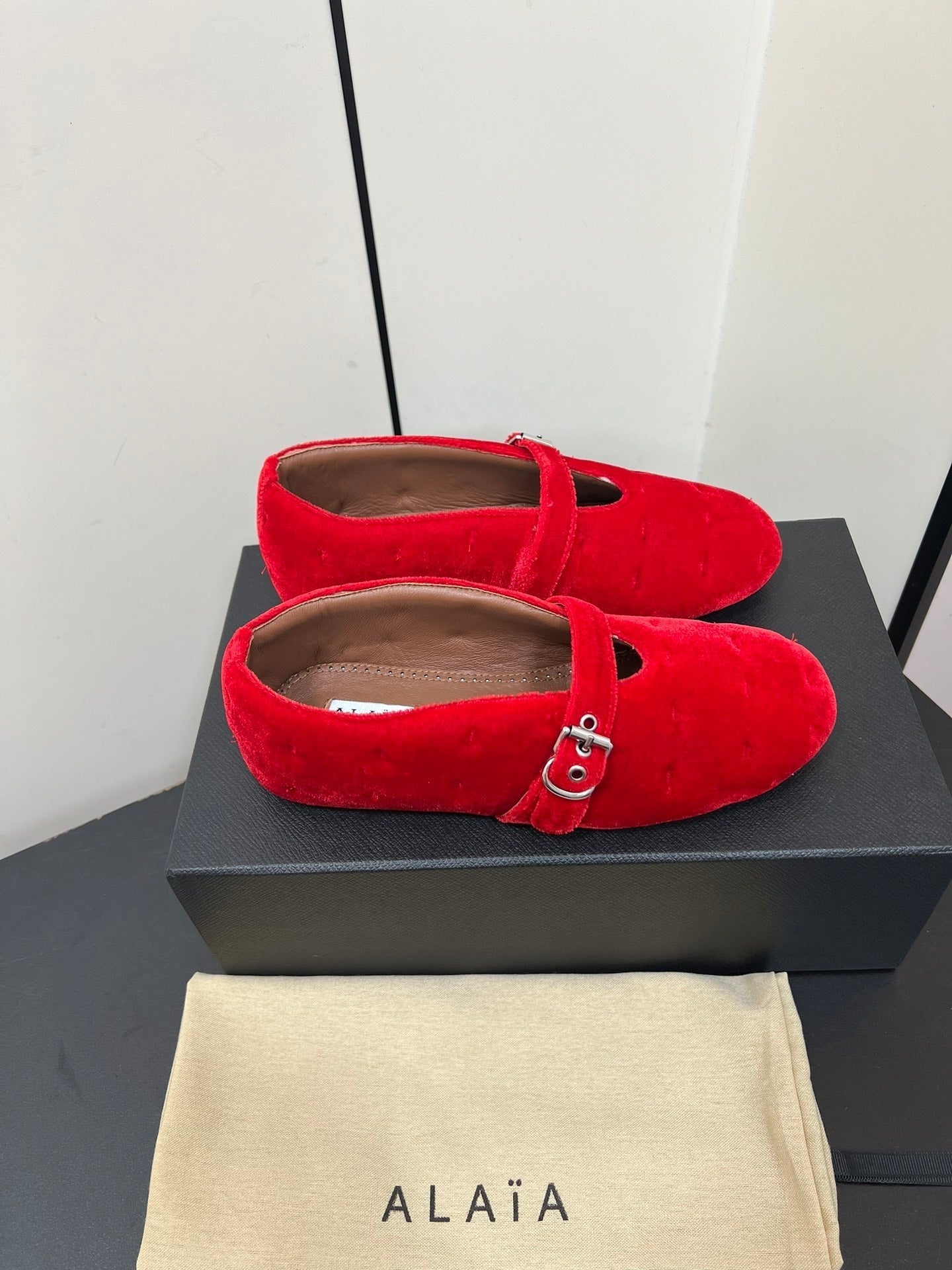 ALAIA BALLET FLATS IN CHERRY RED VELVET