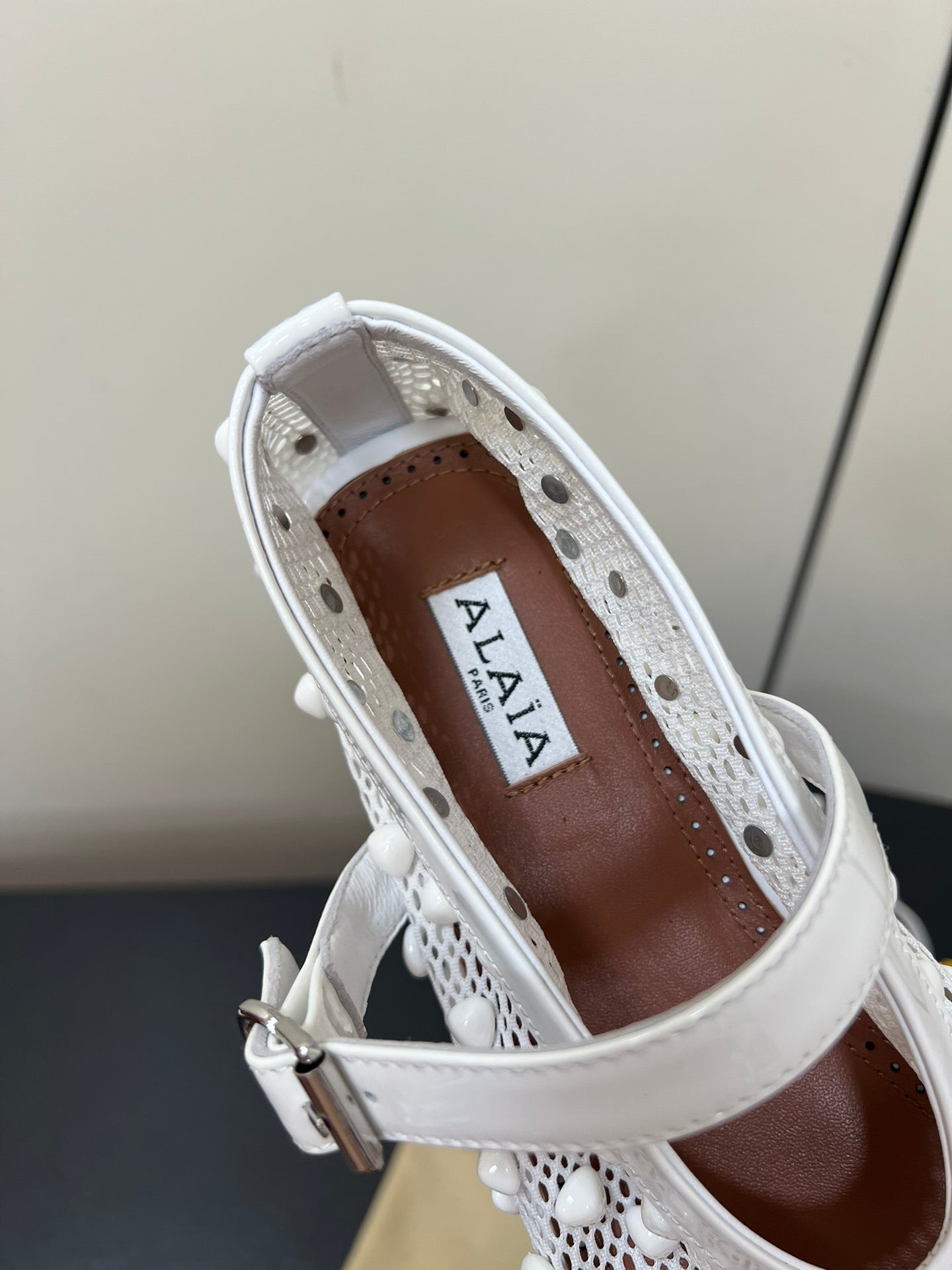ALAIA HIGH FISHNET PUMPS IN BLACK MESH WITH WHITE RHINSTONES