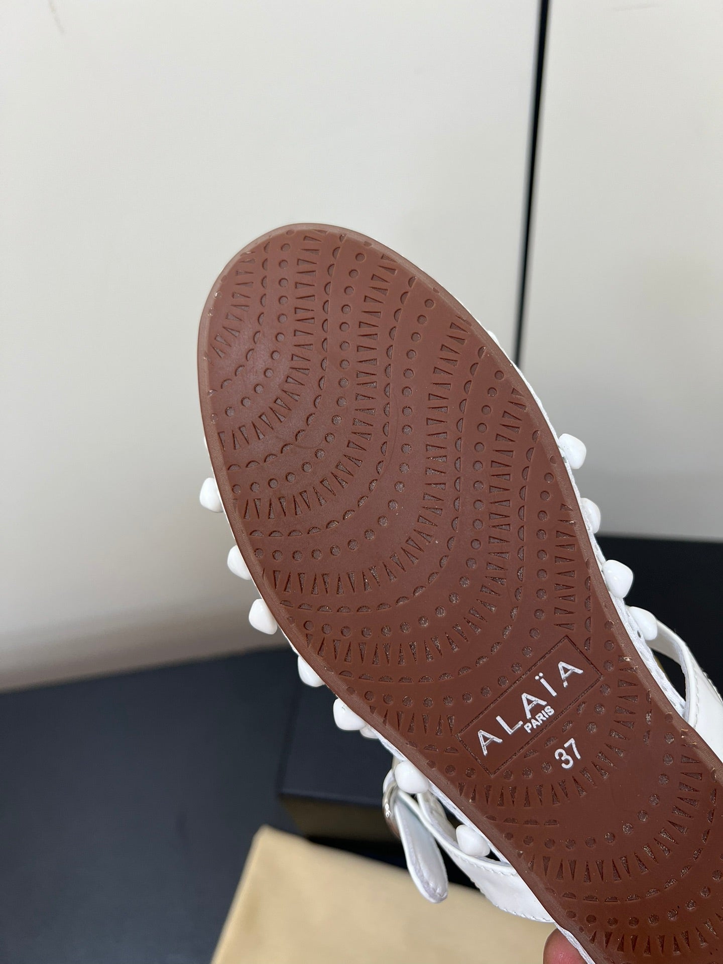 ALAIA SPHERE BALLET FLATS IN WHITE LAMBSKIN