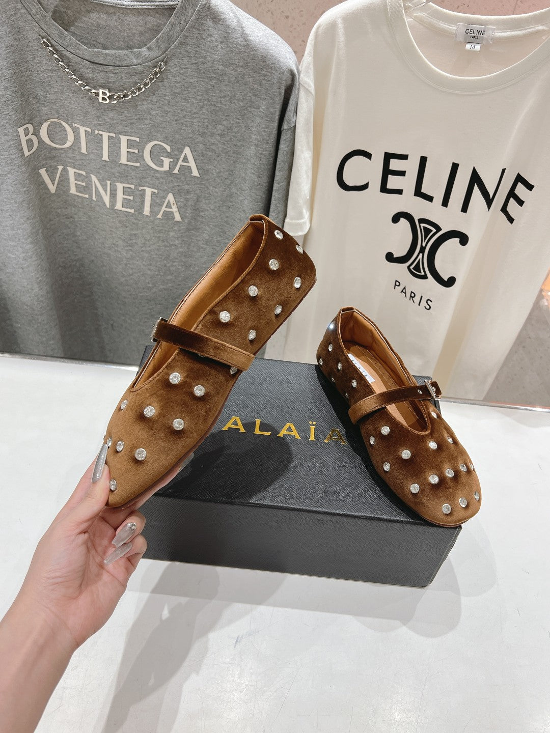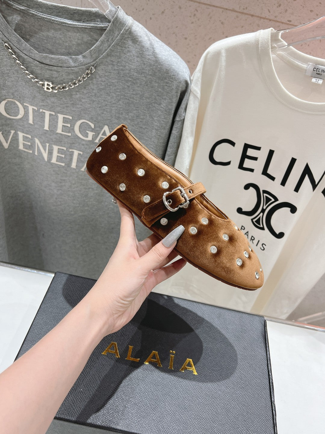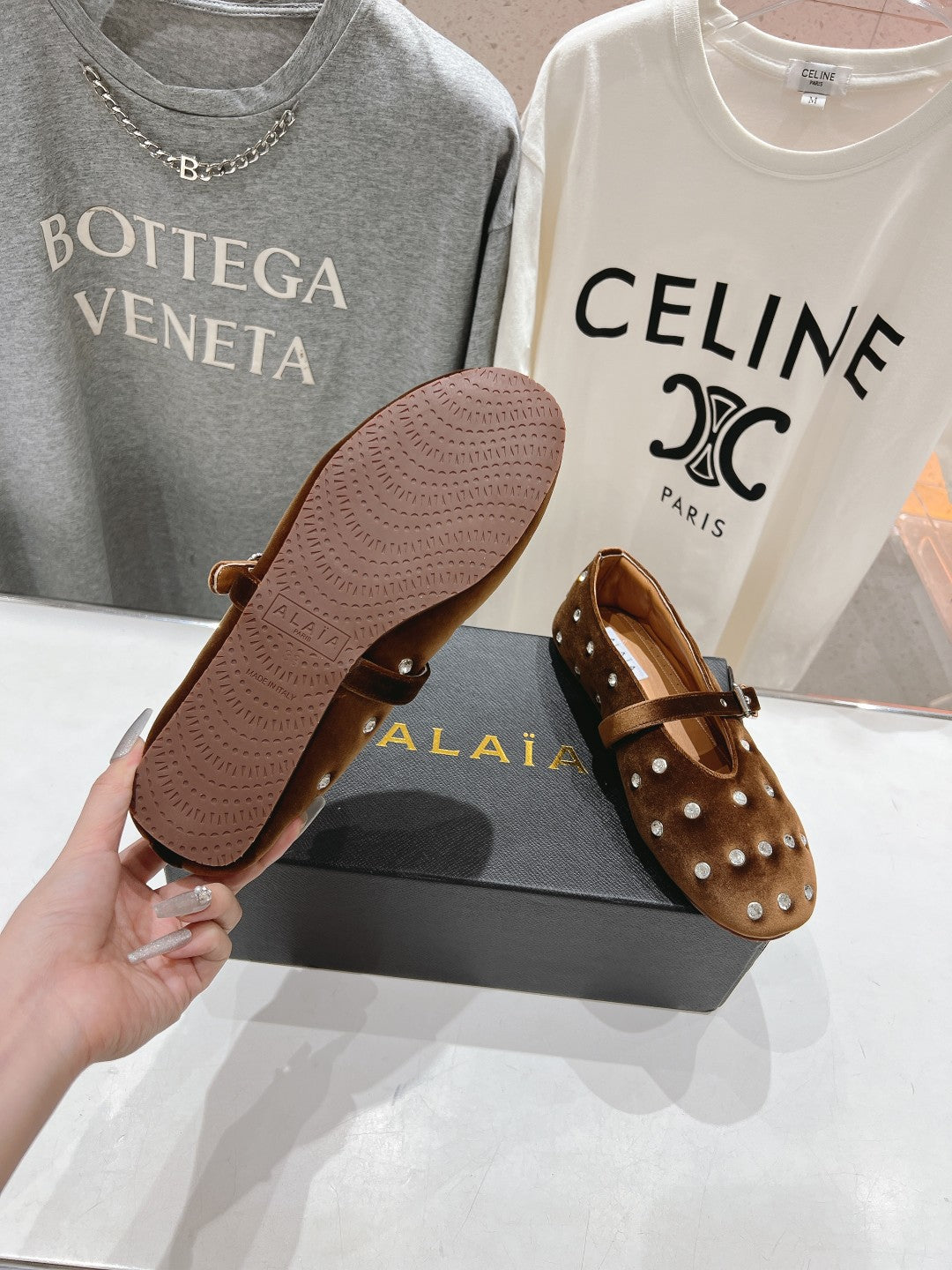 ALAIA BALLET FLATS IN MOCHA BROWN VELVET