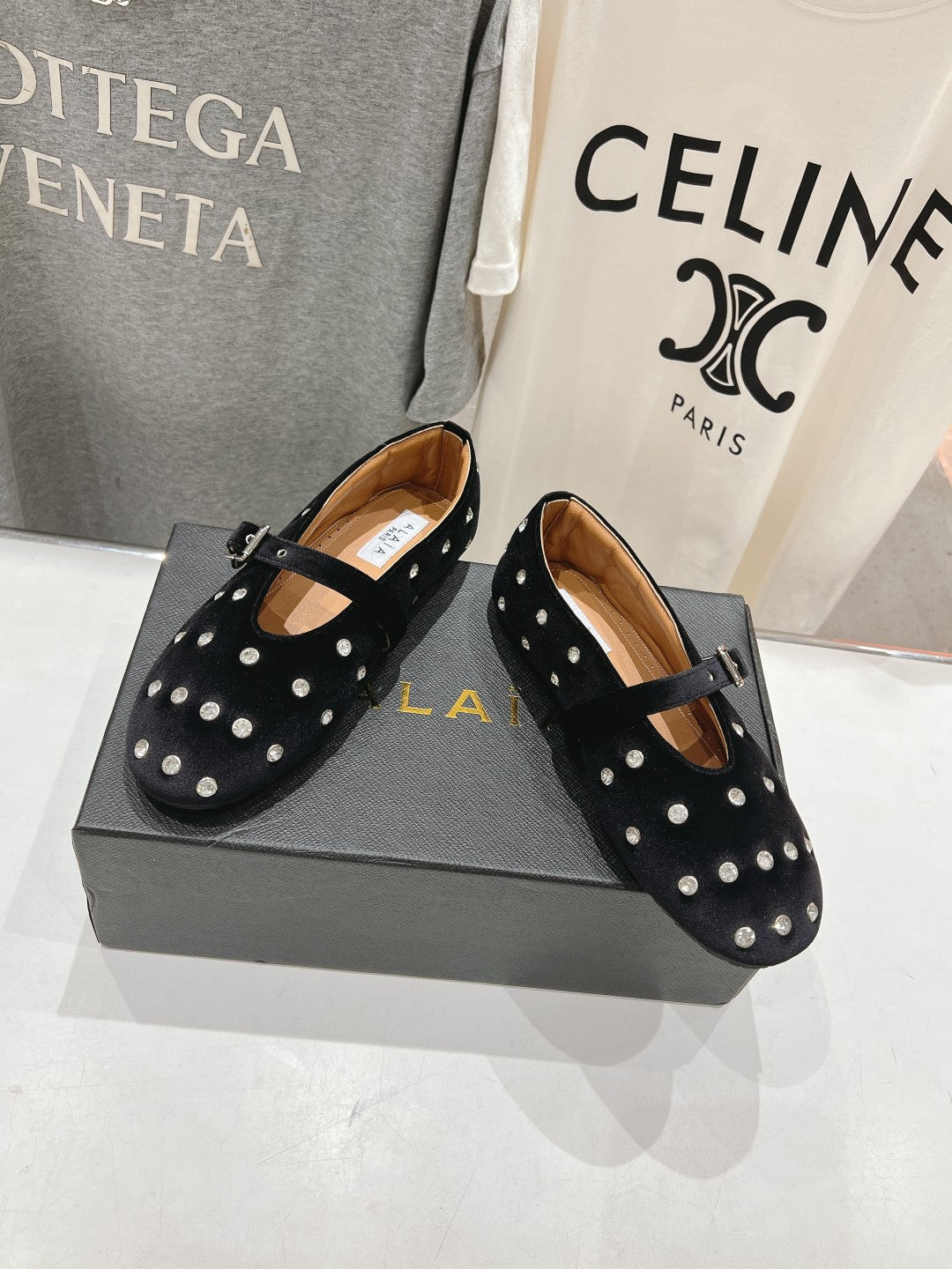 ALAIA SPHERE BALLET FLATS IN BLACK LAMBSKIN