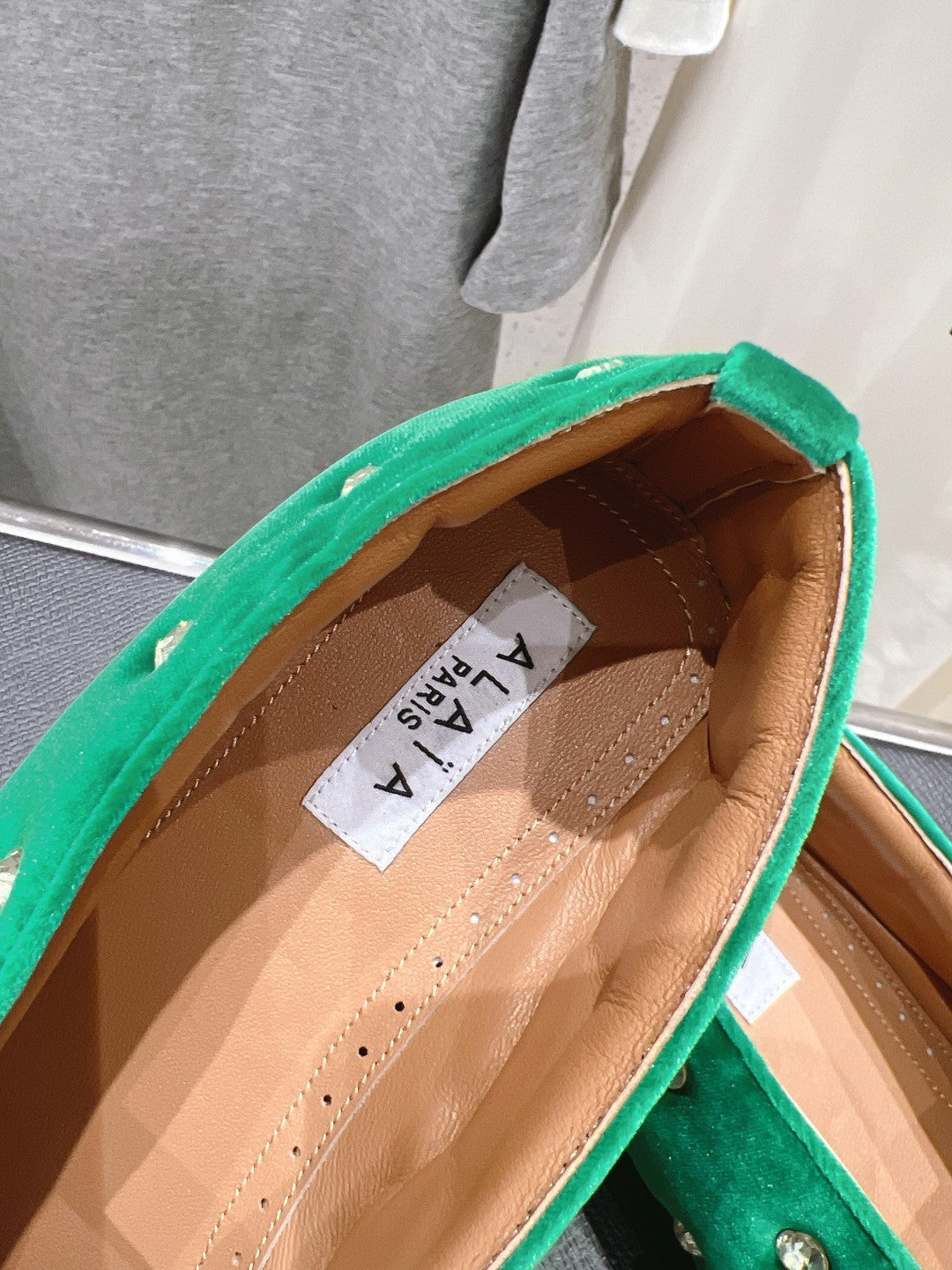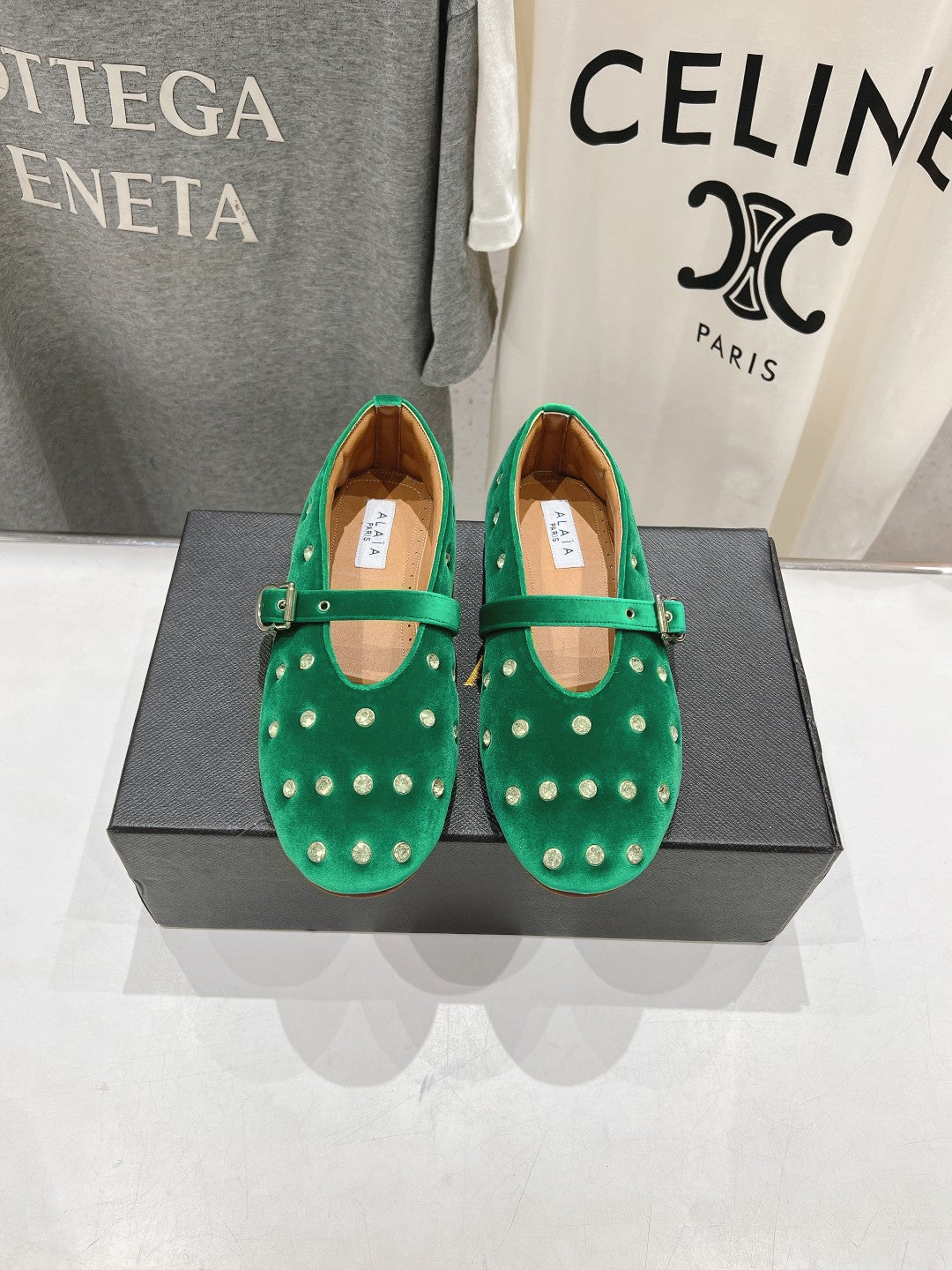 ALAIA BALLET FLATS IN EMERALD GREEN VELVET