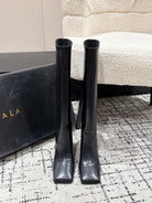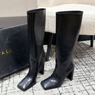 Alaia 2025 Square Toe High Heeled Boot Black Calfskin 558669
