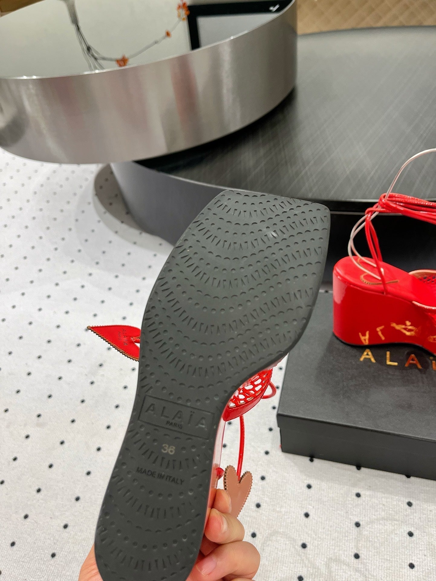 ALAIA PLATFORM WEDGE IN BEIGE TAN LAMBSKIN WITH RED HEART