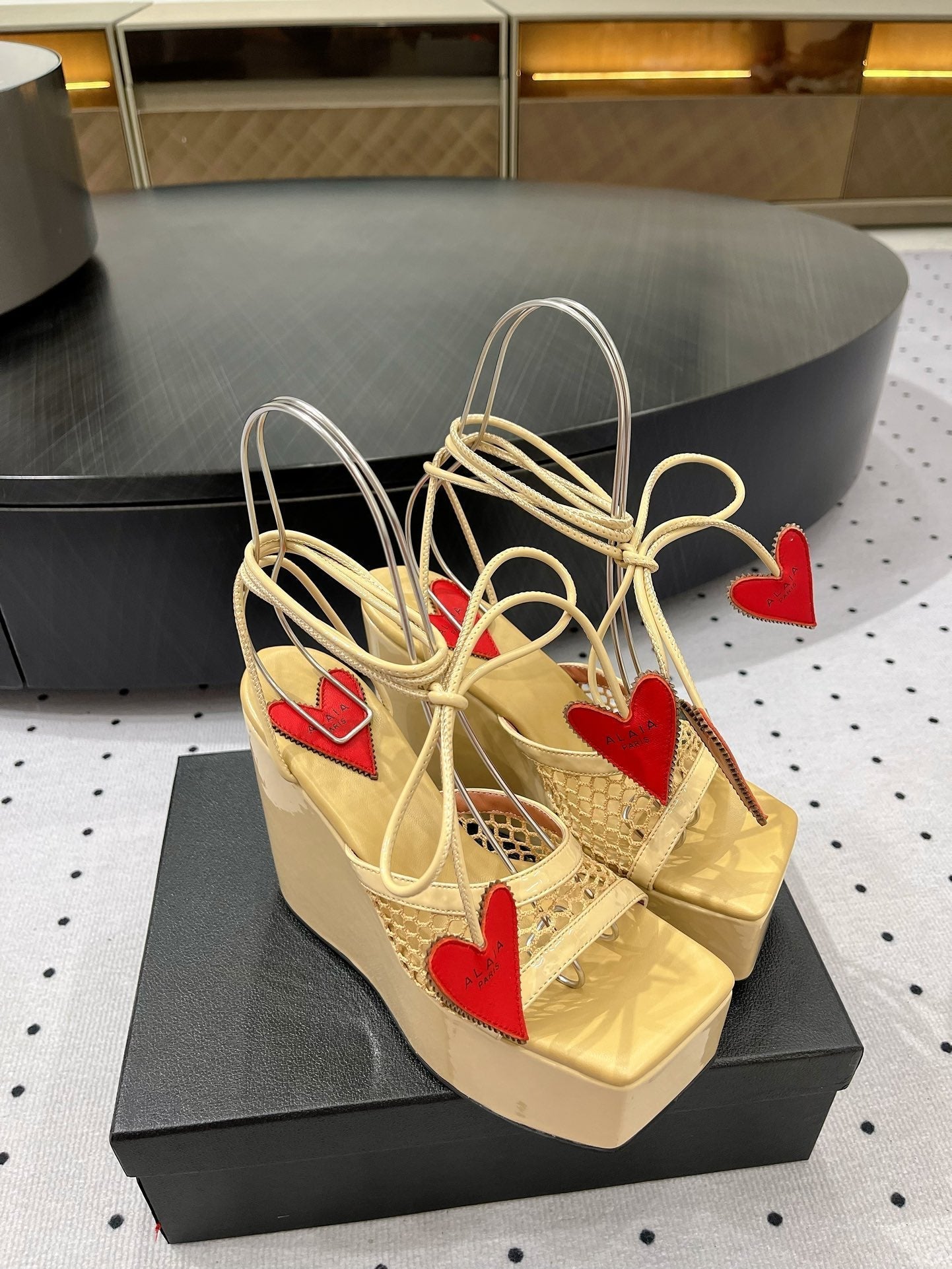 ALAIA PLATFORM WEDGE IN WHITE TAN LAMBSKIN WITH RED HEART
