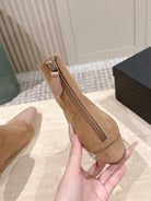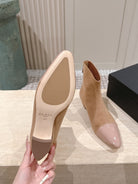 Alaia 2025 Ankle Boot With Patent Leather Cap Toe Tan Nude Suede 556087