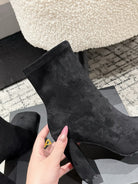 Alaia 2025 Square Toe High Heeled Ankle Boot Black Suede 558668