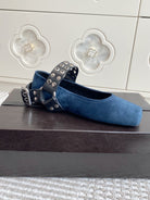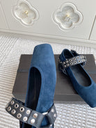 Alaia 25 Biker Ballet Flats Blue Suede 291056