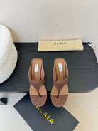 Alaia 25 Cube Thong Mules Brown Satin Sheepskin 297040