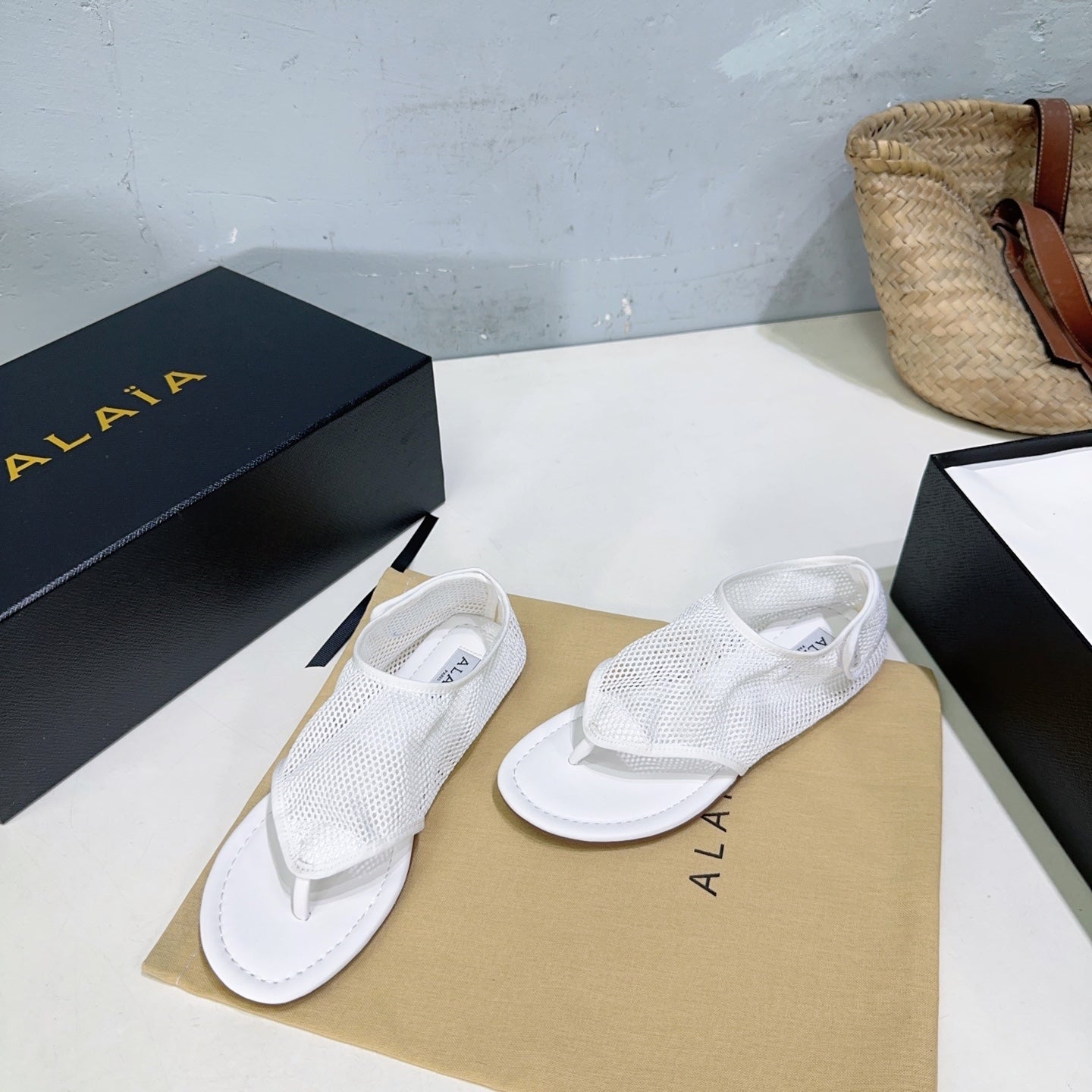 Alaia 25 Thong Sandals White Fishnet Sheepskin 315964