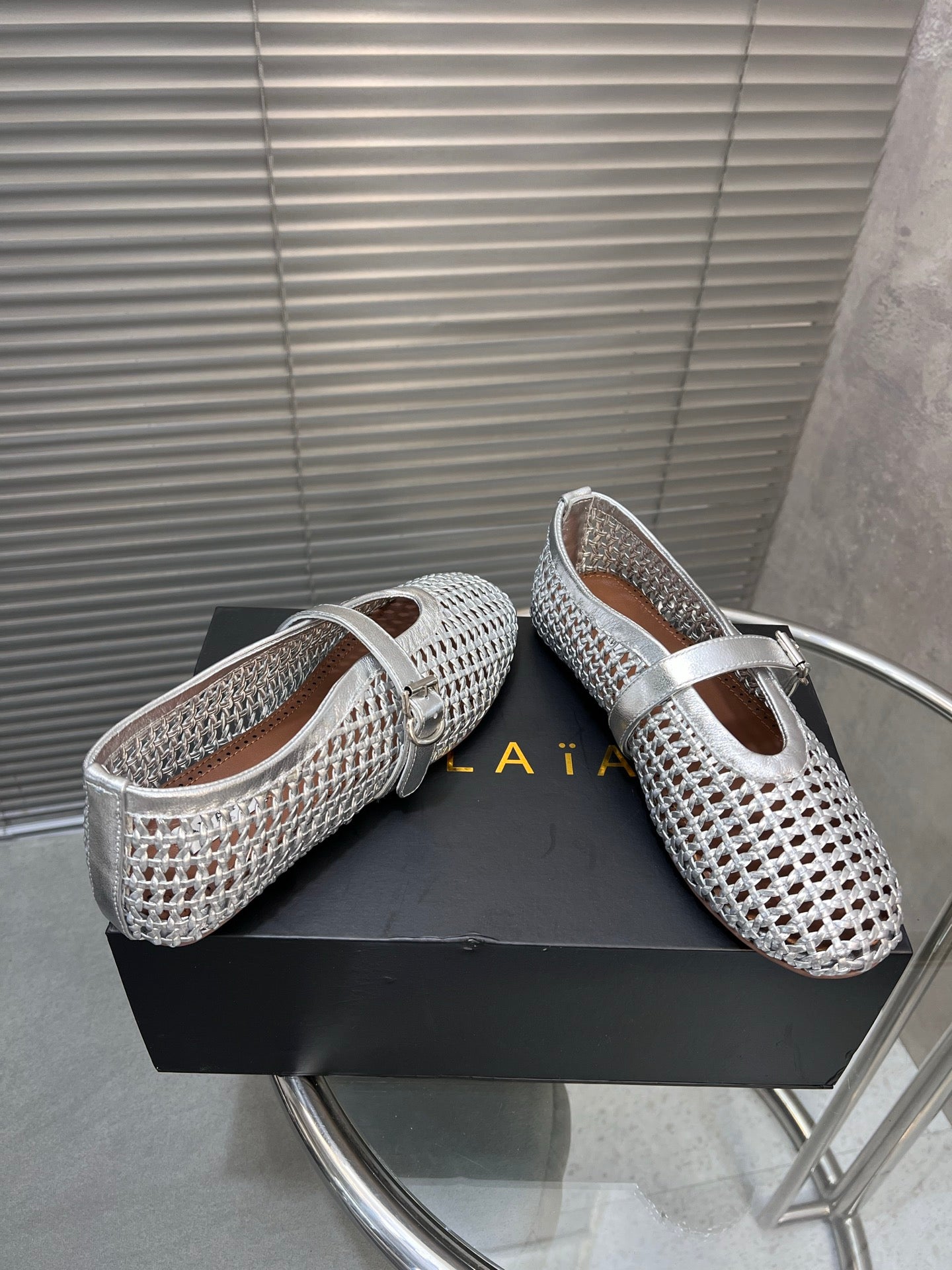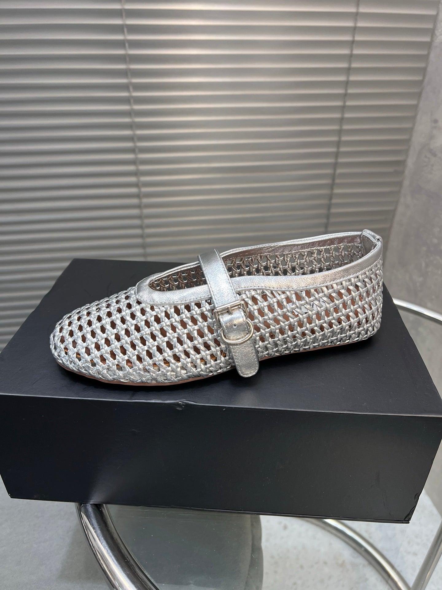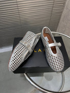 Alaia Braided Hollow Ballet Flats Silver Cowhide 300042
