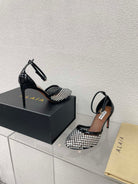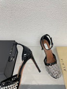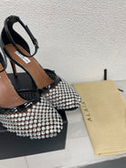 ALAIA HIGH FISHNET PUMPS IN BLACK MESH WITH WHITE RHINSTONES
