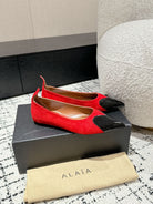 ALAIA PUMP 1 CM IN CHERRY RED SUEDE MIX BLACK CALFSKIN