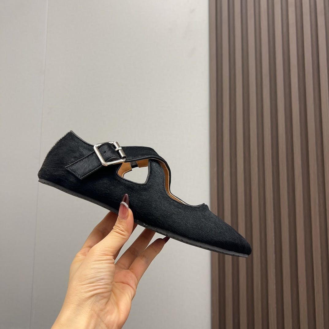 Alaila Criss Cross Ballet Flats In Black Lambskin 996055