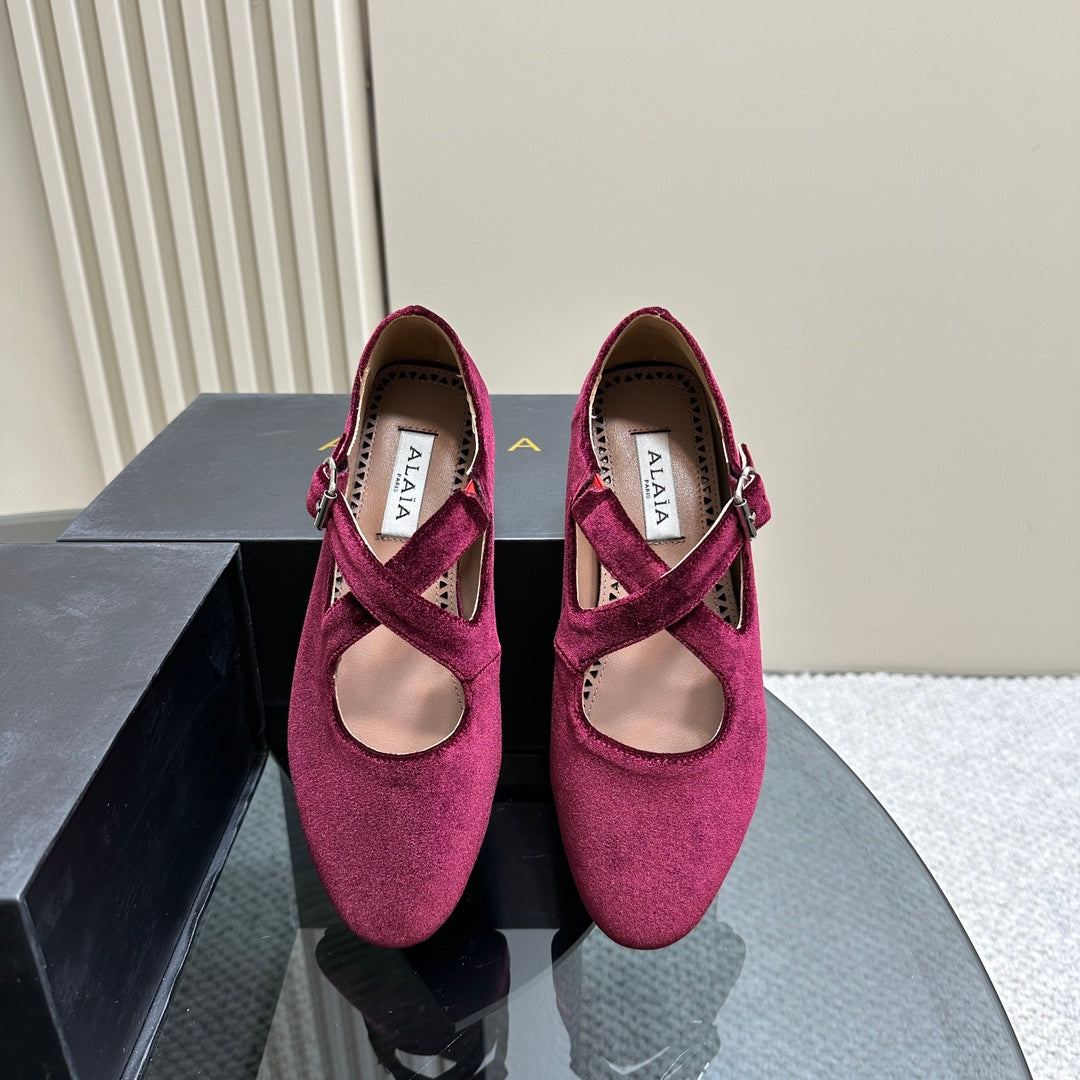 Alaila Criss Cross Ballet Flats In Red Purple Velvet 920783