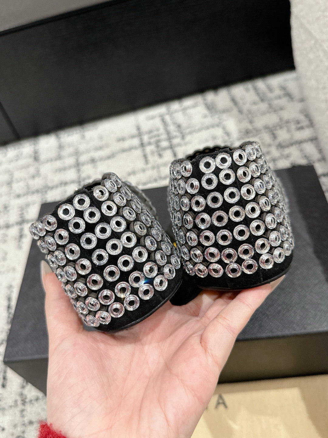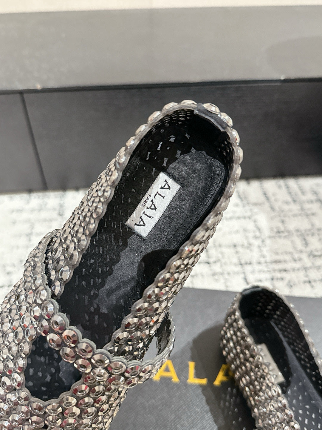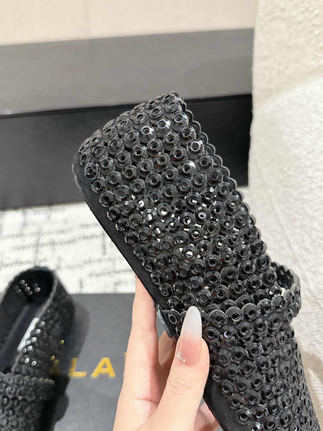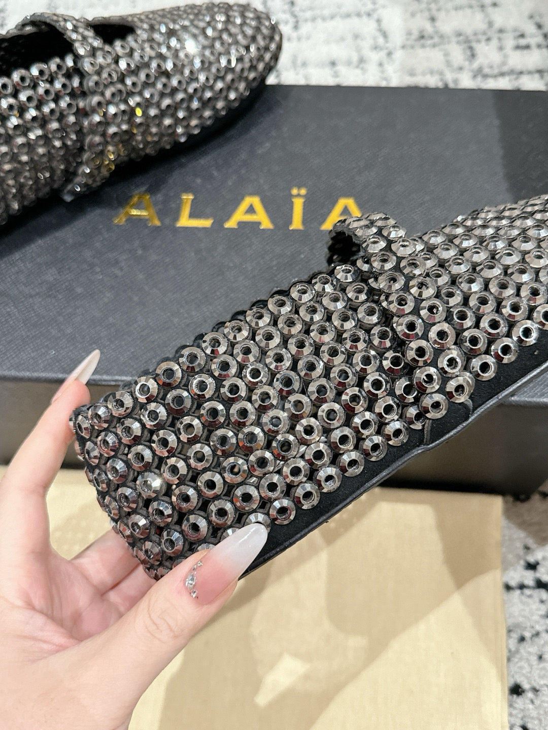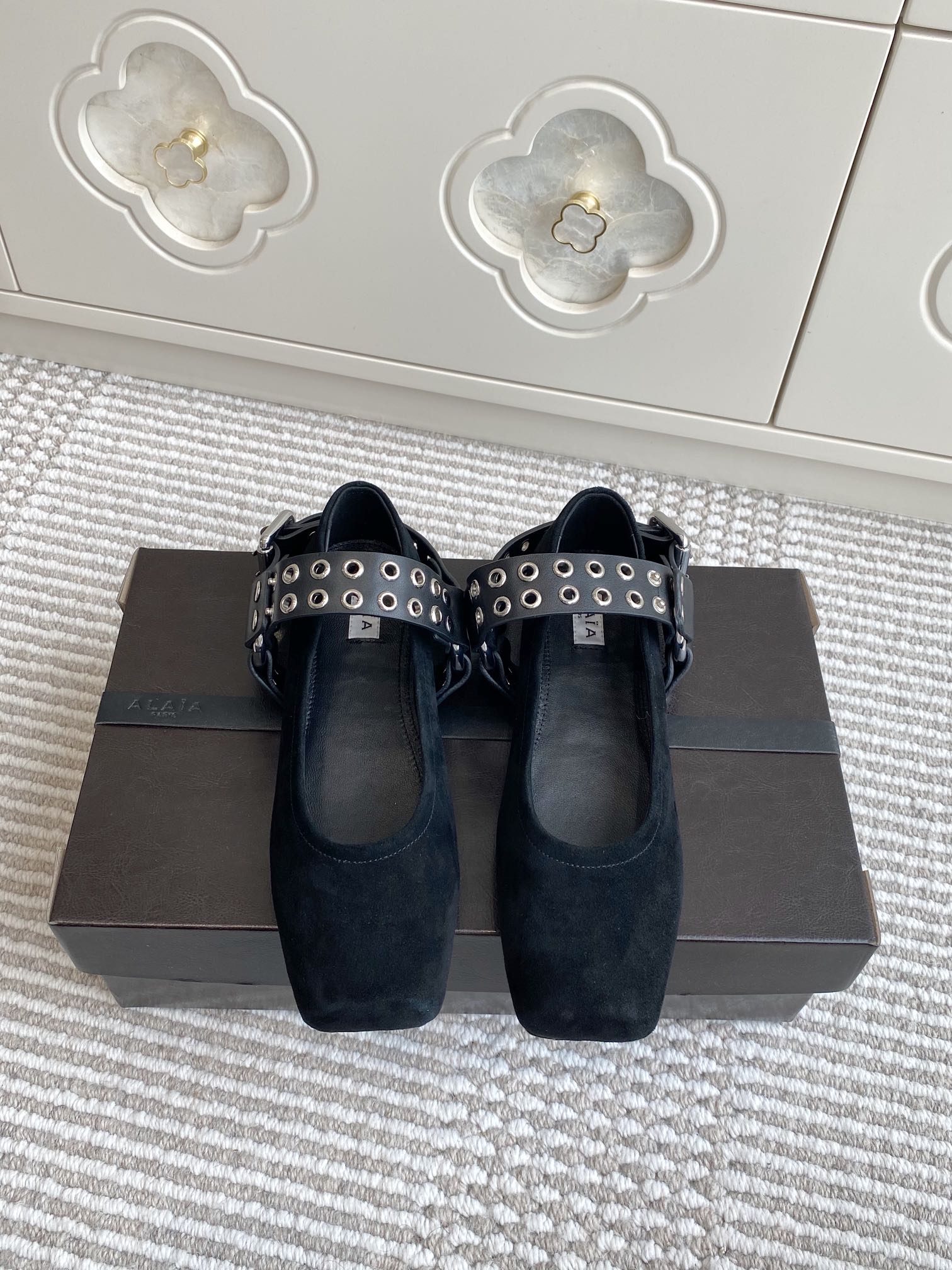 Alaia 2025 Criss Cross With Stud Ballet Flats Black Suede 293205