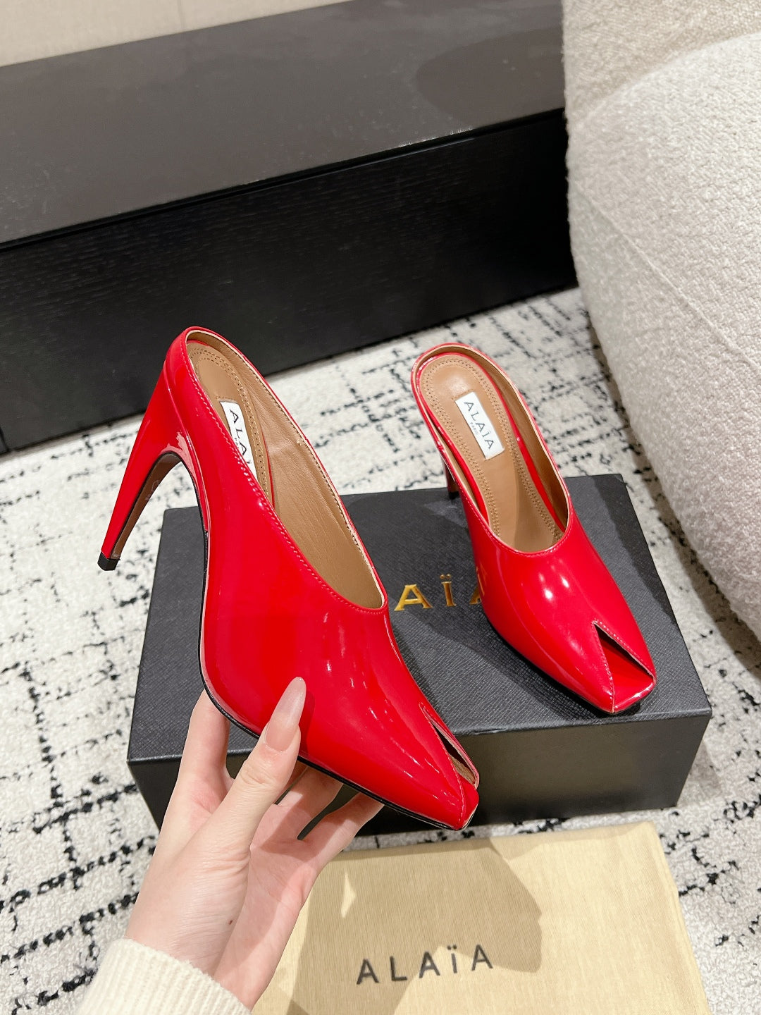 Alaia 25 Spike High Heel Mules Glossy Black Lampskin 293184