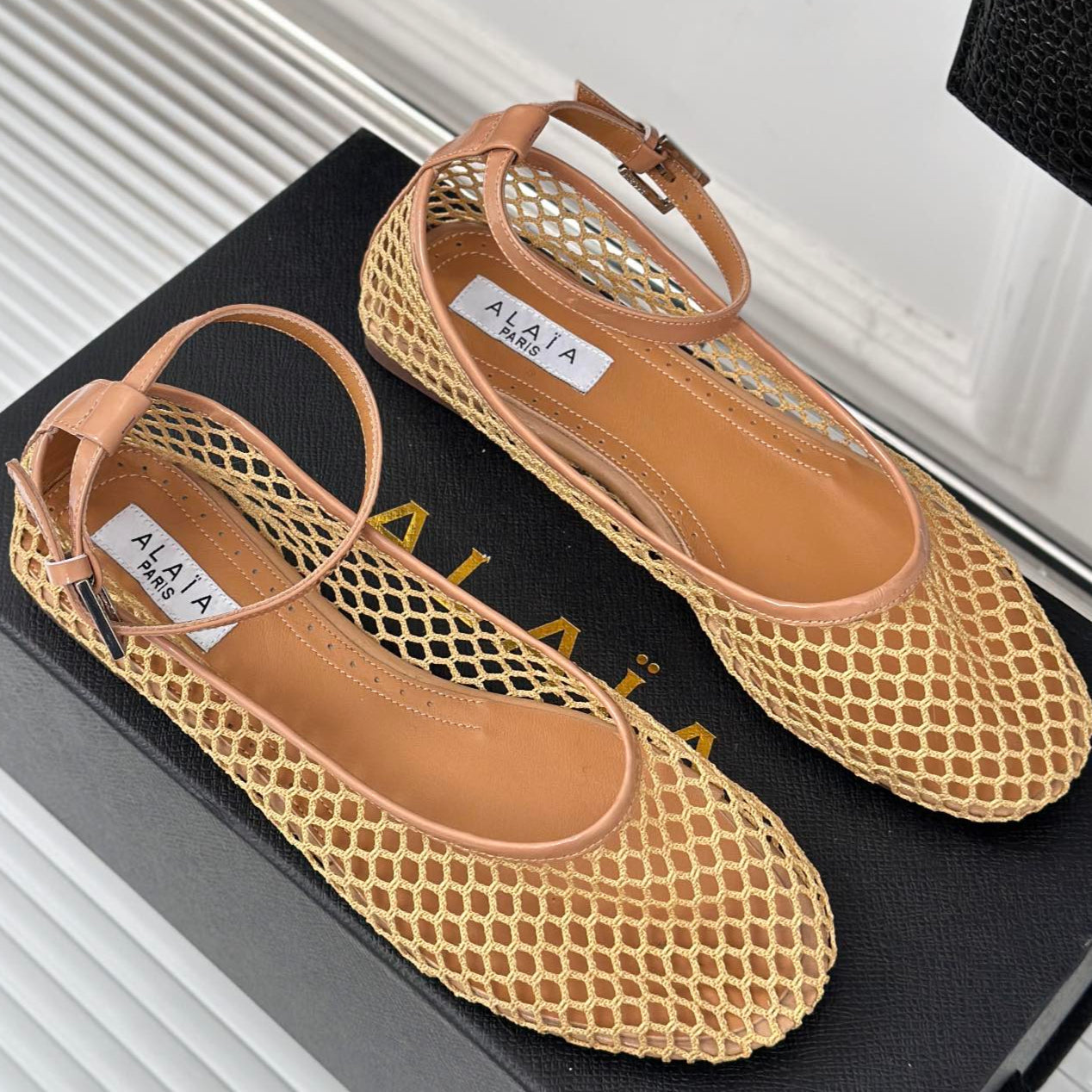 Alaia 25 Mary Jane Mesh Ballet Flats Gold Calfskin 293249