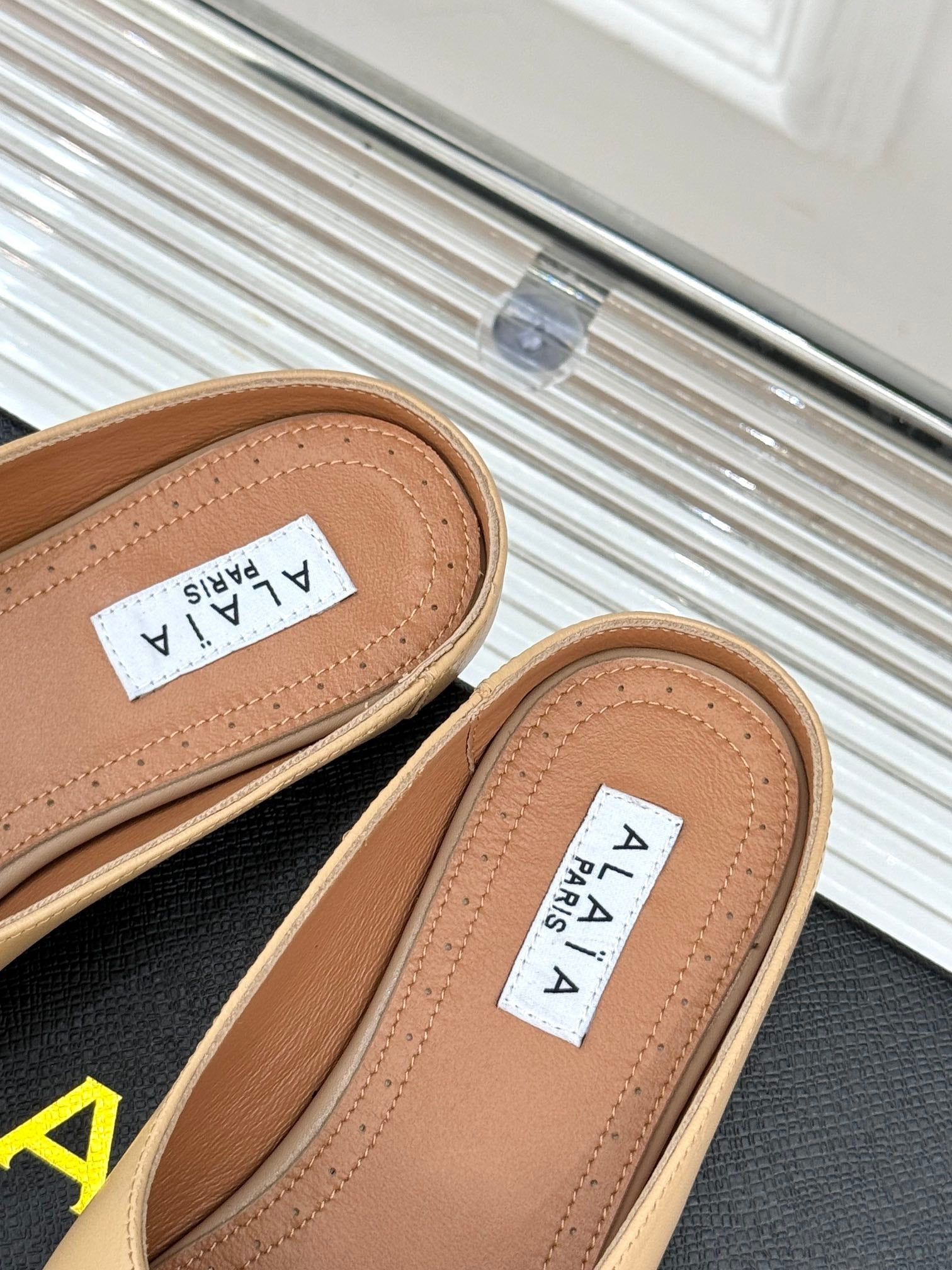 Alaia Slipper With Gold Hardware Brown Calfskin 293202