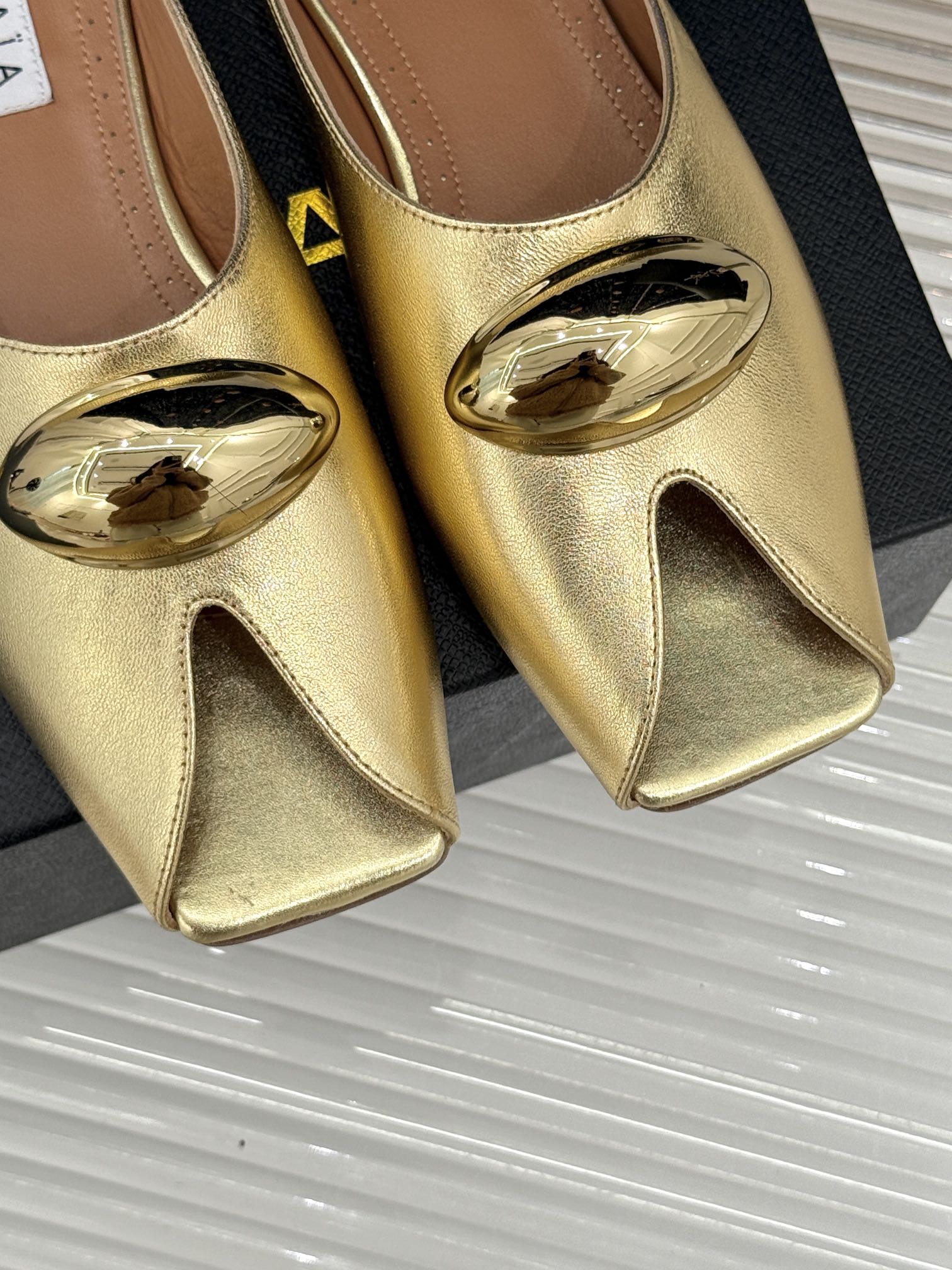 Alaia Women's Ballet Flat Gold Lambskin 291053