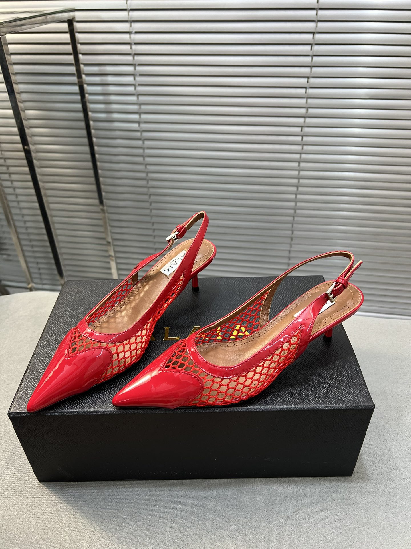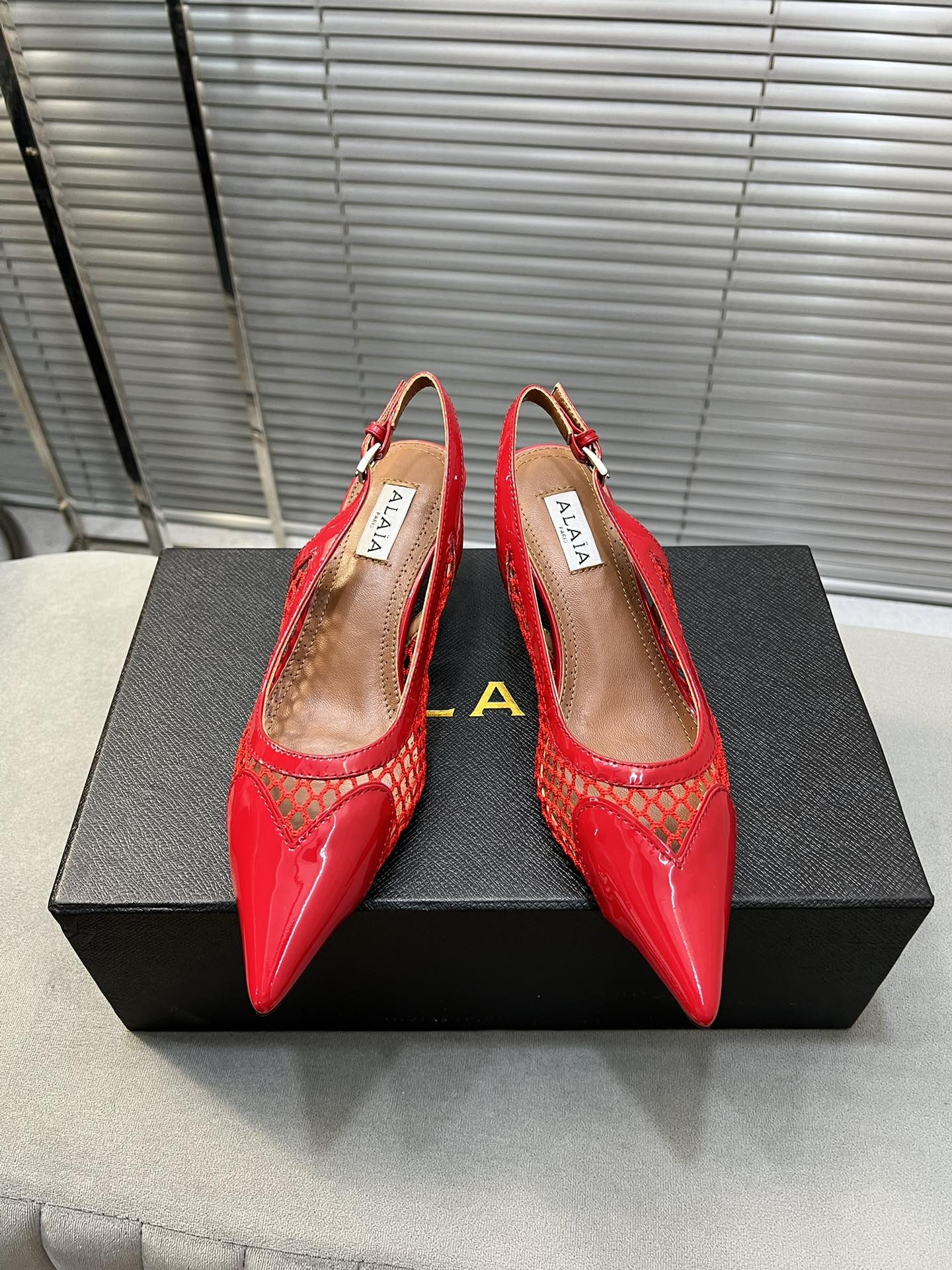 Alaia 25 Spike High Heel Mules Red Lampskin 293183