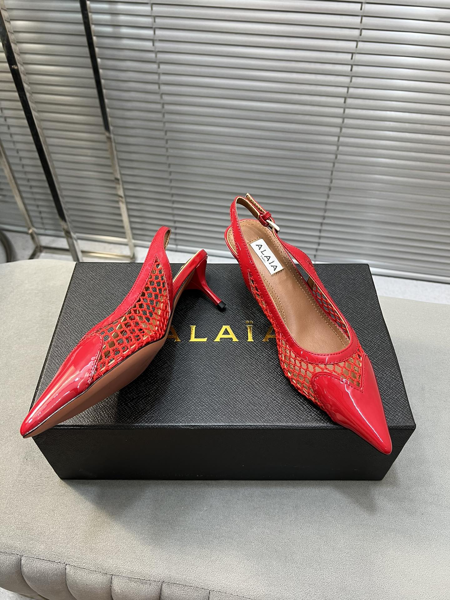 Alaia Confetti Leather Mules Red Sheepskin Cowhide 293164