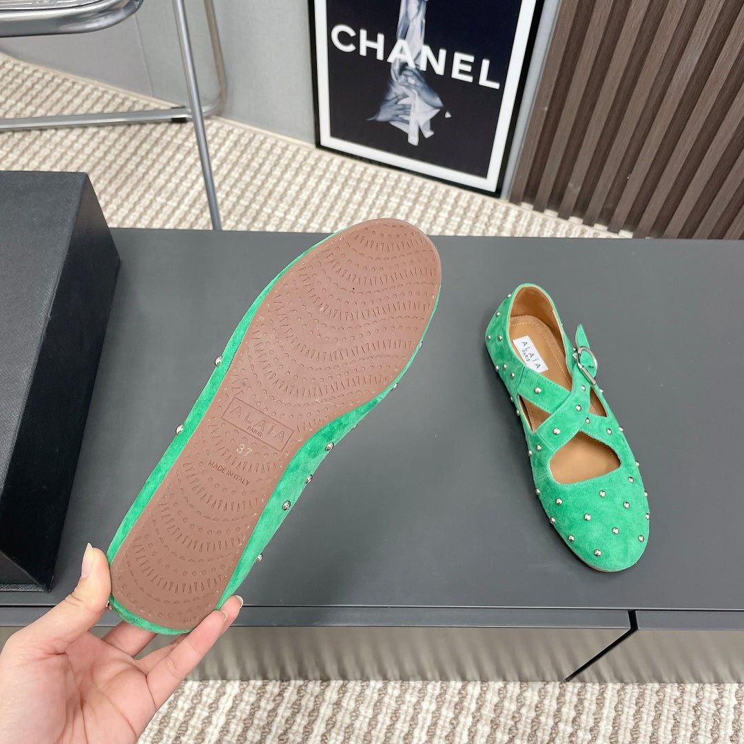 Alaia 2025 Criss Cross With Stud Ballet Flats Shamrock Green Suede 293210