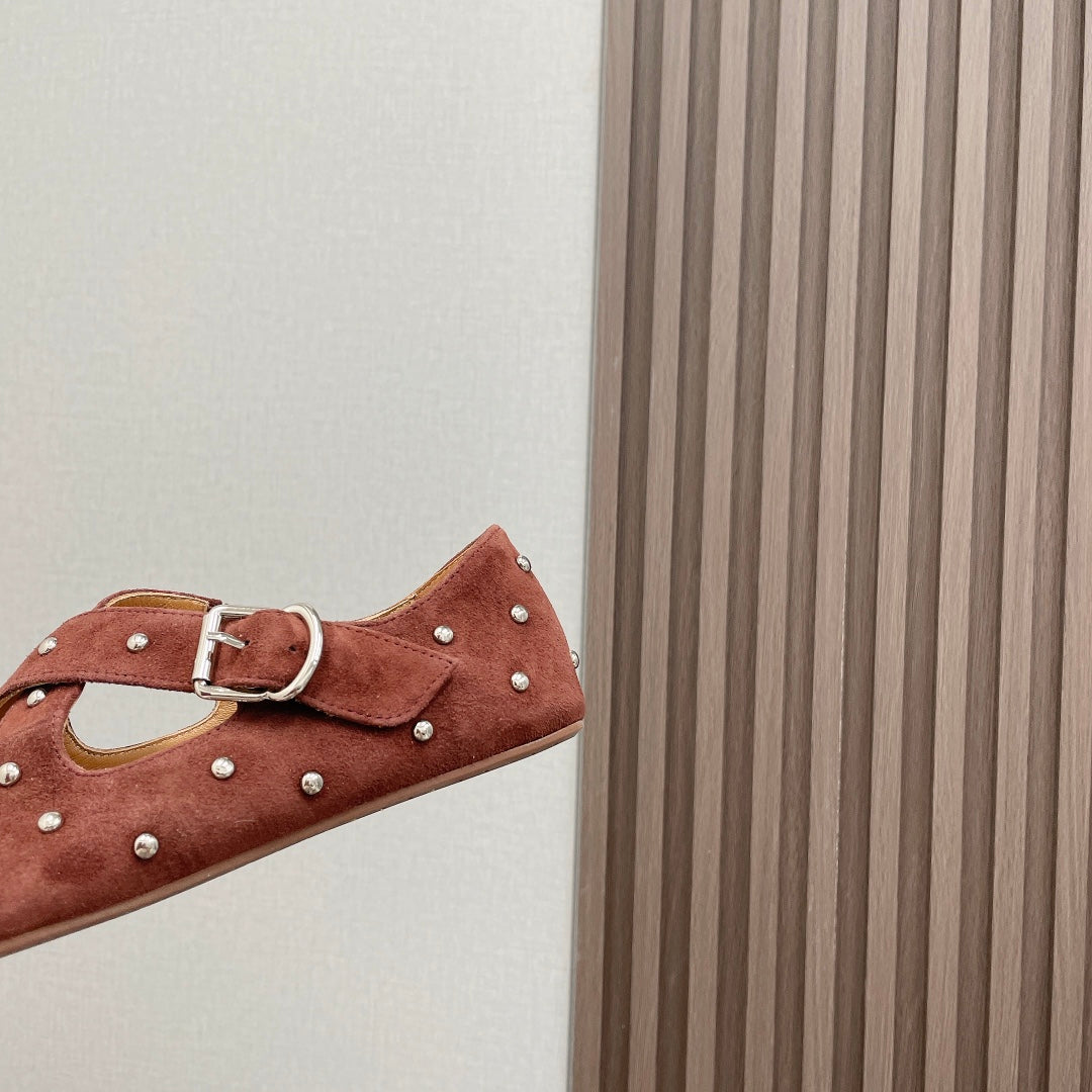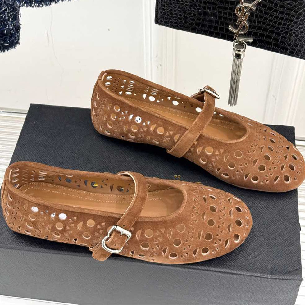 Alaia 2025 Criss Cross With Stud Ballet Flats Brown Suede 293213